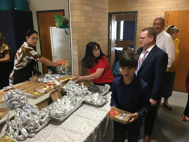 After church, they had a "linger longer" with wraps, fruit, "biscuits" (cookies) and "cookies" (because that recipe was from an American member).