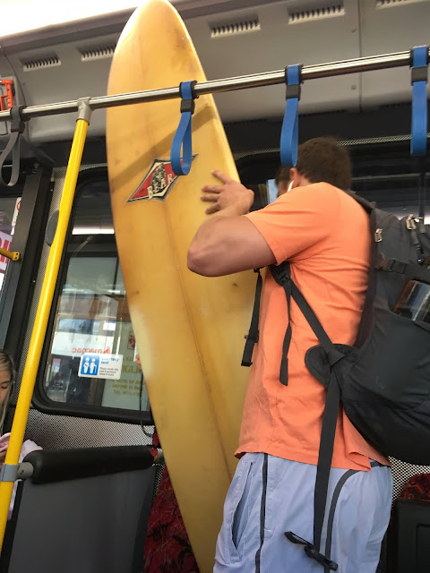 On the bus, it was funny to see a guy hop on with a surf board. Not something you ever see in Salt Lake City.