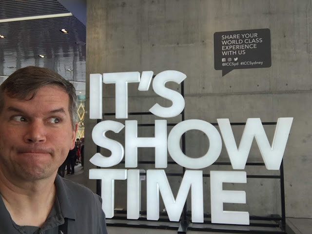 On Wednesday afternoon (my time), Linette and our friends were boarding planes Tuesday night (their time) to head to Australia. So when I saw this thing in the lobby of the ICC, I thought it was appropriate to send along.