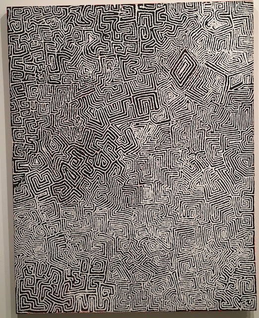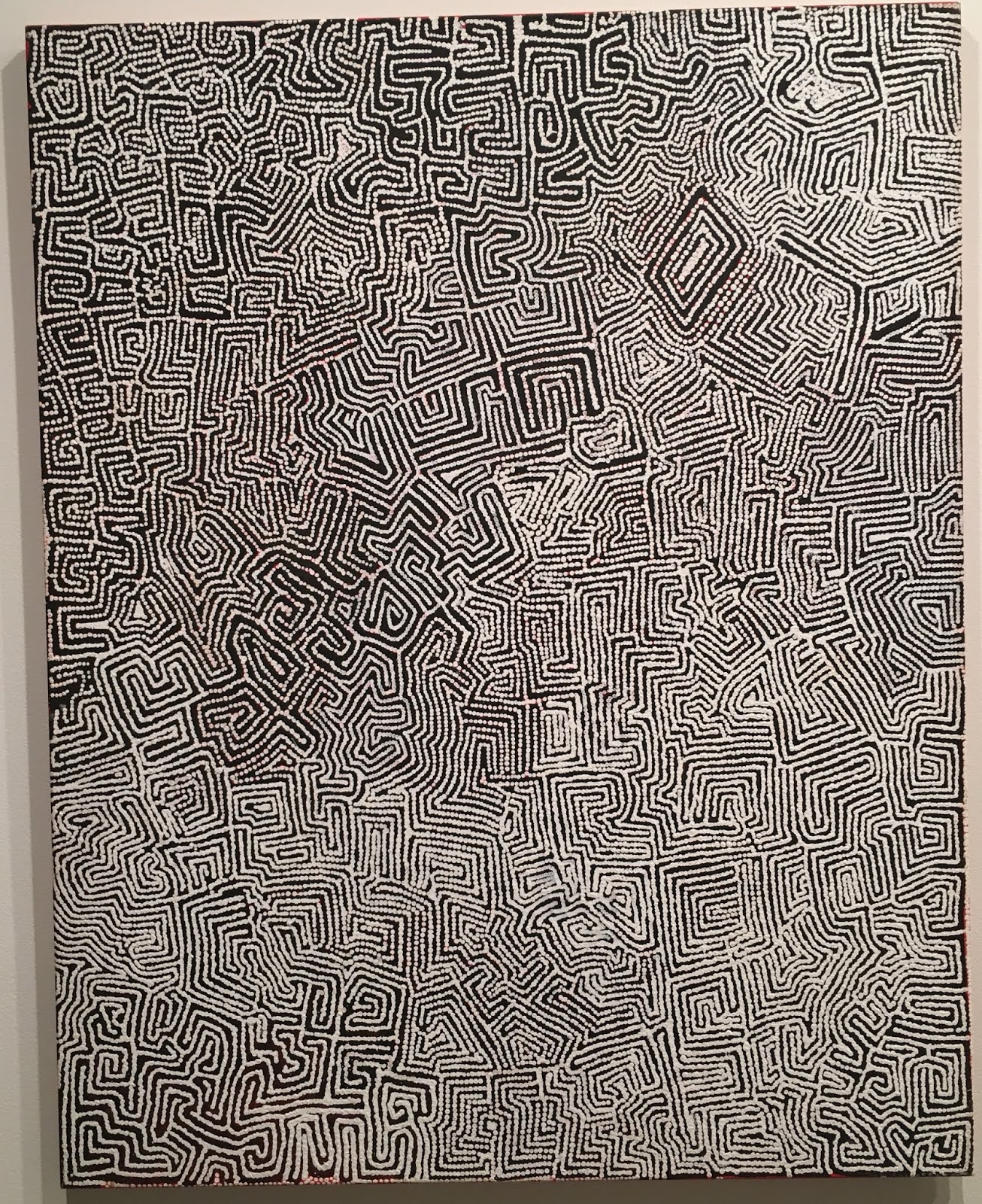 The aboriginal art makes heavy use of dots, which sometimes freaks your eyes out (especially if you click this image and look at it full sized).