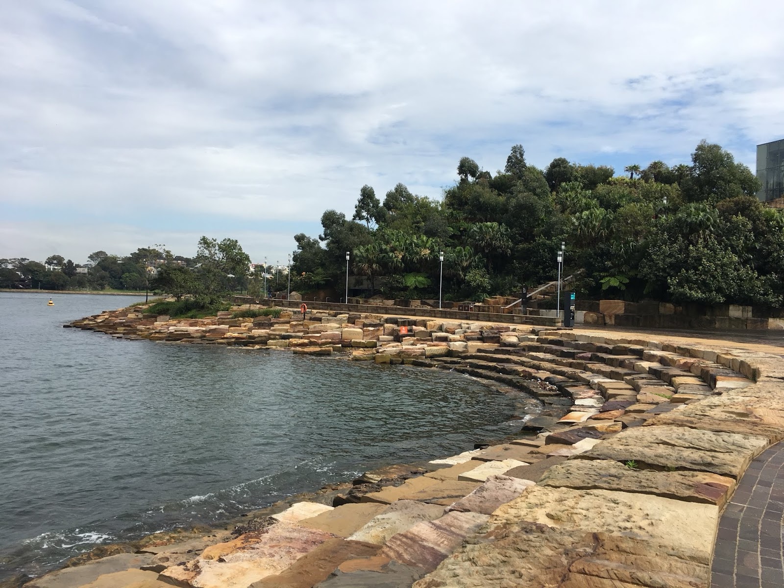 We unfortunately took a path through a large construction area that took 20 minutes to get through, but then stumbled across the Barangaroo Reserve, which had a cool stepped shoreline and woodsy paths overlooking the Harbor.