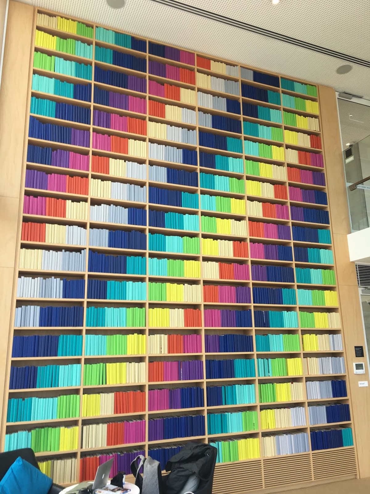 That afternoon, Steven and I checked into the AirBnB that we were sharing (after some delay, since the previous guest had forgotten to leave the key), and then took the "train" (metro/subway) to the Green Square Library, which had some interesting things like a room with the spines of discarded books all covered in rainbow colors.