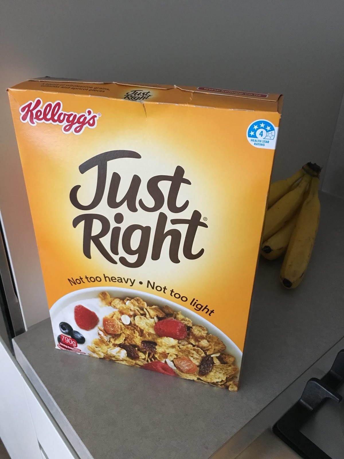 We hit a grocery store to get food for breakfast. I got some cereal that was just right.