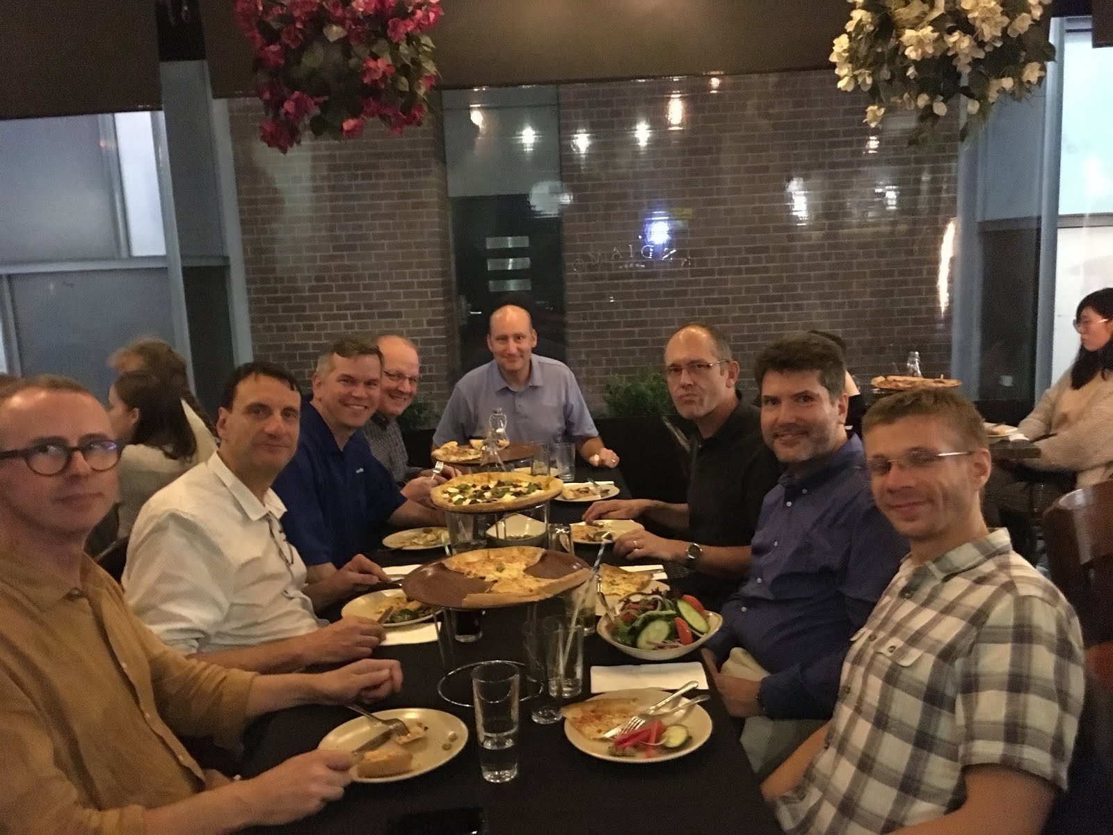 Speaking of eating, we had some nice pizza with the organizers of the HIP workshop. It was fun to talk with them about the places they were from, which included Italy, Greece, France and other places. (Just on the far side of me is Ty Davies, who is one of the main managers at FamilySearch).