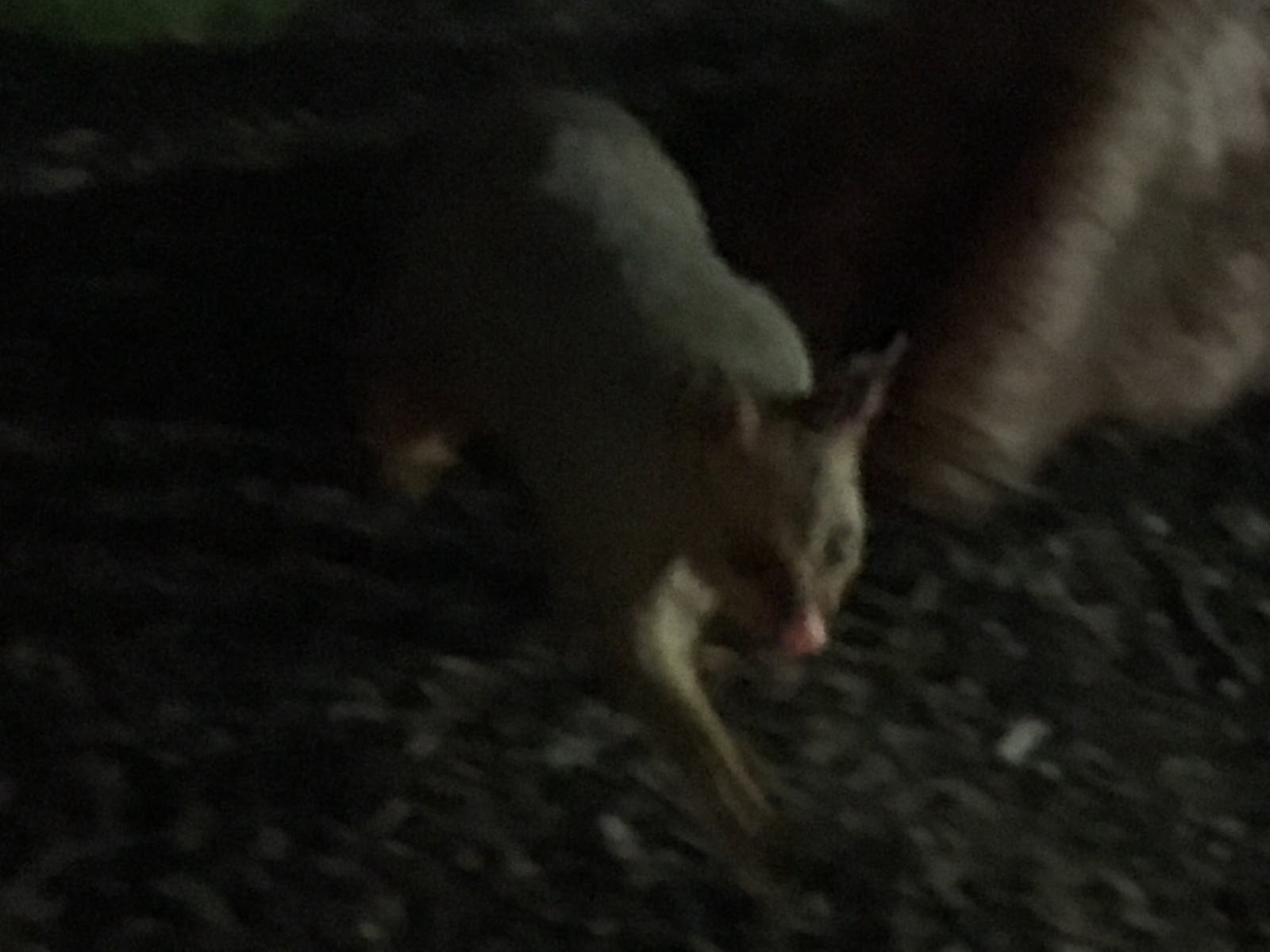 My friend Tim Stokes later told me that this was an opossum, and I didn't believe him at first, but it turned out to be a "bush-tailed opossum", so that was cool.