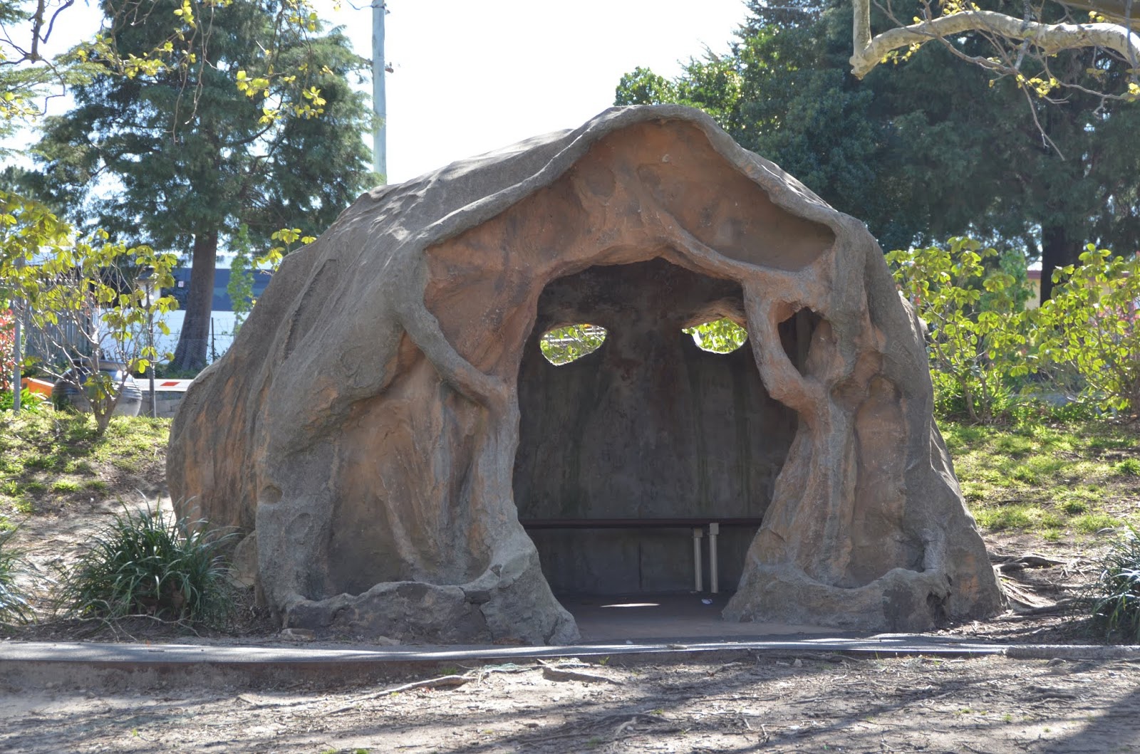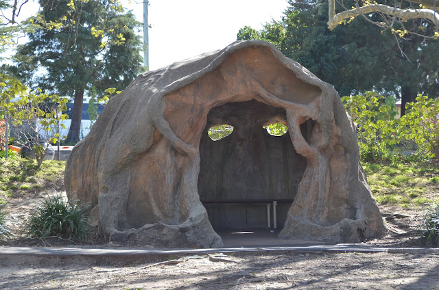 We first drove to Echo Point, and I thought the little shelter there looked like a face.