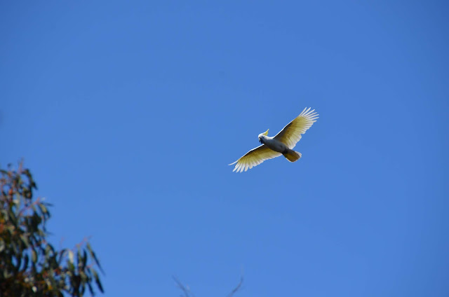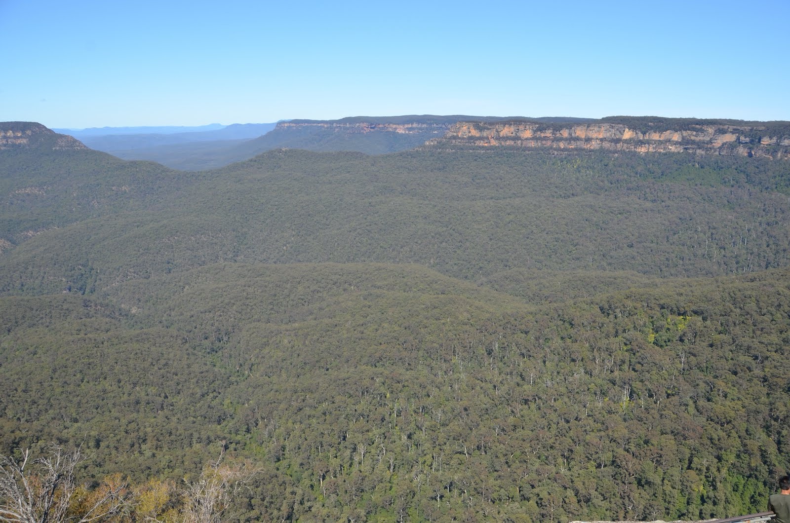 The initial view was indeed impressive. We were pretty high up, looking down over a huge expanse of eucalyptus forest with a ridge on the other side. It felt a little like it did looking over the Grand Canyon, except with trees.