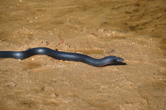 However, also enjoying that pool was a black snake with a red belly, which unsurprisingly turned out to be a "red-bellied black snake".