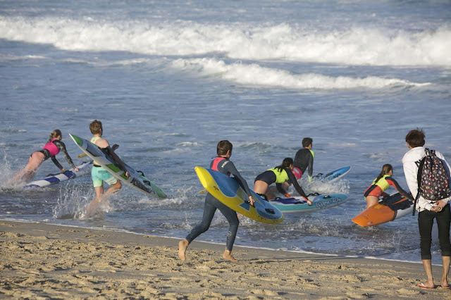 When we got back home, we finally took a few minutes to play at the beach that had been across the street from our house the whole week. A group of kids was there doing beach rescue training.