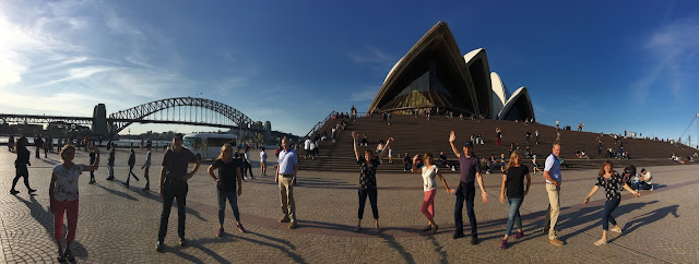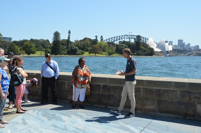The tour led us over to a view of the Opera House and Harbor Bridge. The guide had a largely aboriginal upbringing, some of his ancestors being aboriginal people. So he shared with us some insights about their beliefs and culture. Scientists believe that the aboriginal people have been there for 30,000-60,000 years, making it one of the oldest cultures in the world. He talked about the strong sense of "reciprocity" in the culture, where if someone does something that helps you out, you should do something kind for them, too.