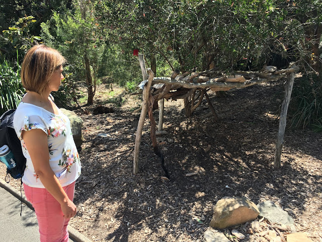 I was actually disappointed not to learn more about the Aboriginal people and their culture from either this tour or anywhere else I had been in Sydney. Linette asked what kind of dwellings the people lived in, and the guide showed us this little arrangement of sticks, which reminded me a bit of Nacho Libre's shelter. (I read later that larger shelters like this, called Wiltjas, were used to provide shade, but not shelter from rain. They were abandoned and rebuilt rather than maintained, as the nomadic hunter-gatherer lifestyle did not lend itself to permanent structures.) I'm suspecting there is a lot more to the Aboriginal culture that would be fascinating to learn, but his tour didn't reveal much of it.