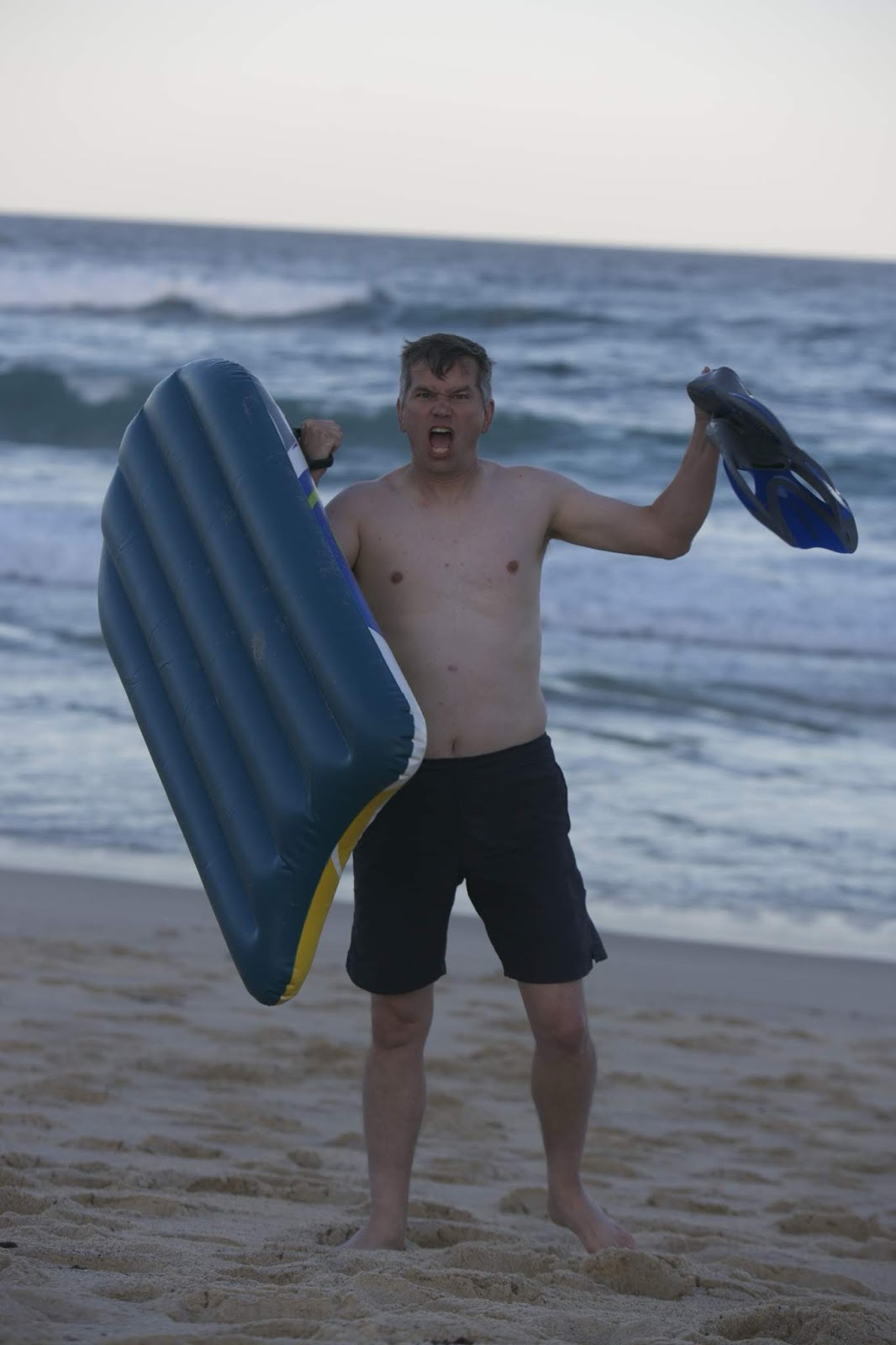 I was the only one dumb enough to get it. But by gum, I brought this inflatable boogie board, and I was going to use it!