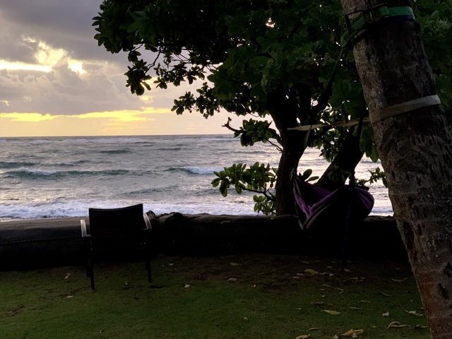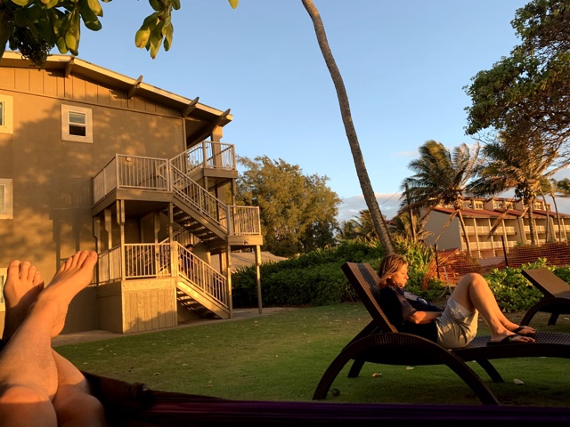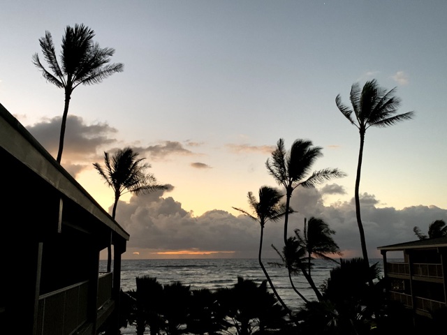 I woke up before 6 a.m. again. We could almost see the sunset from the lanai, but it didn't quite come right up there (which was just as well, because it meant we could eat breakfast in the shade).