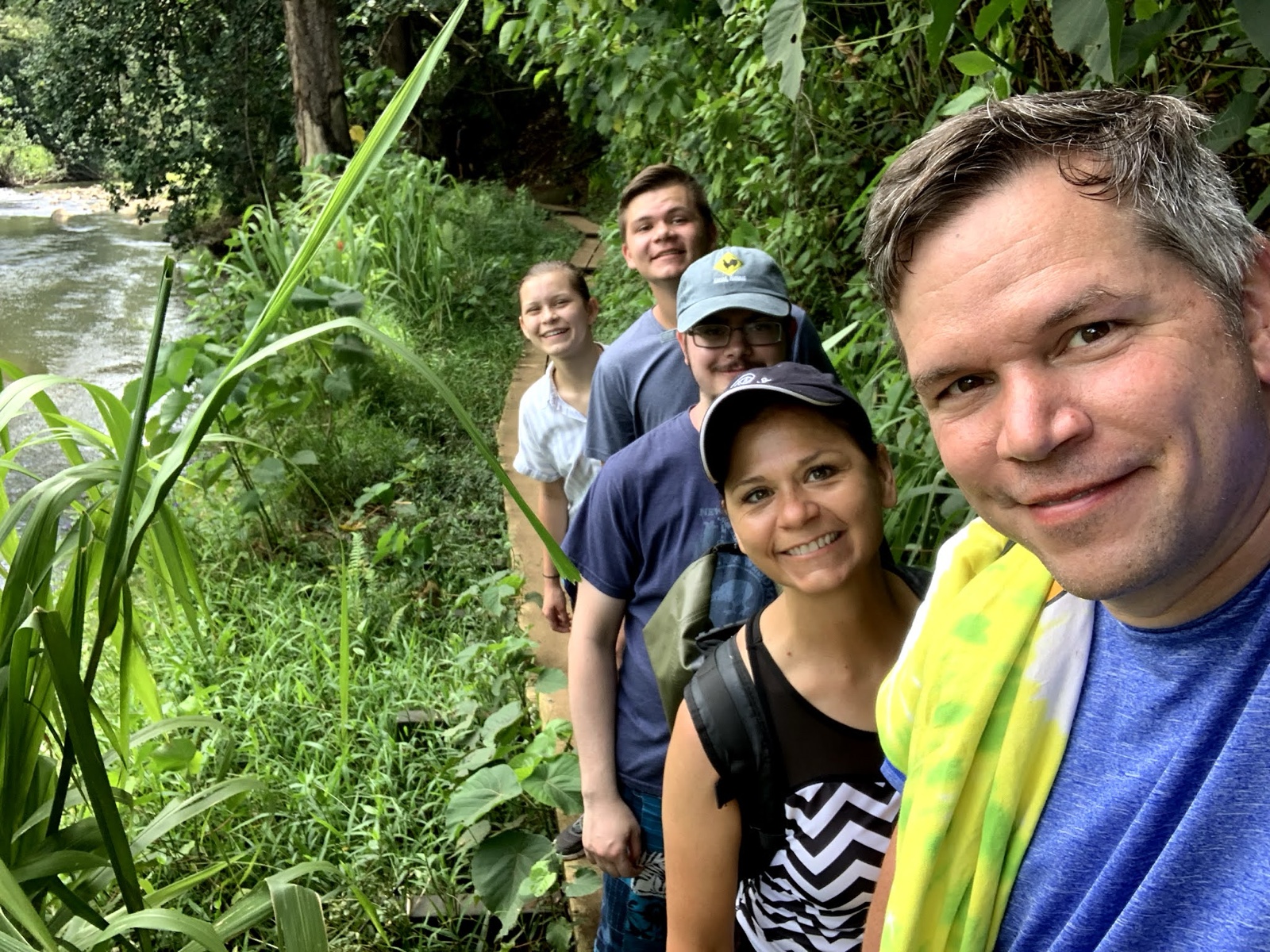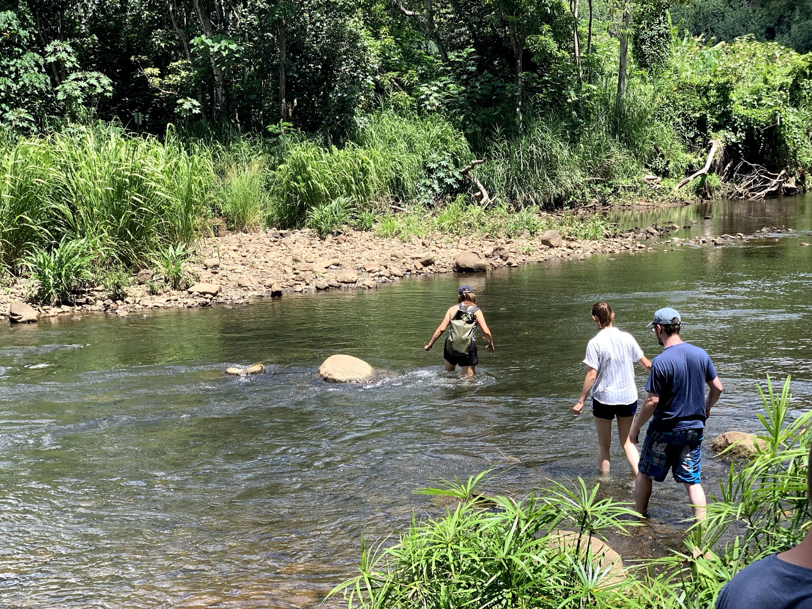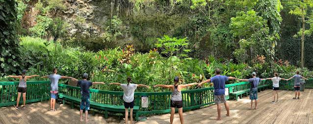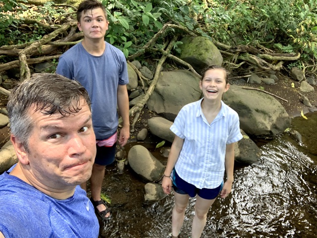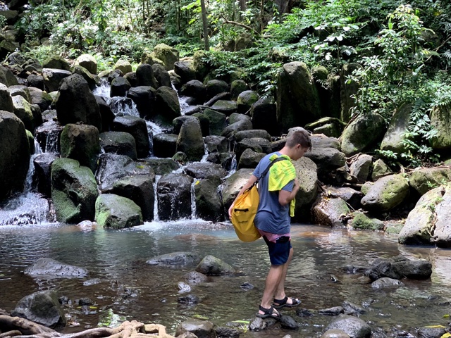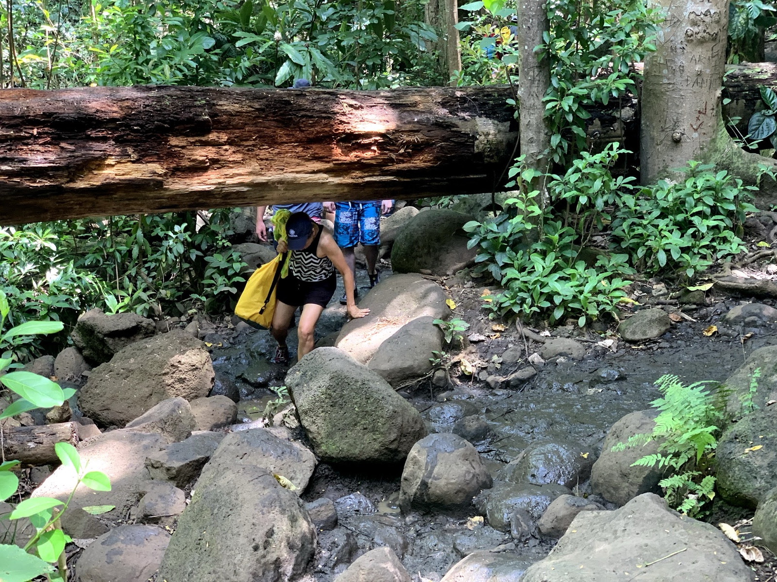 Then we began a 1-mile hike to "Secret Falls". This involved a couple of river crossings, so we did it in swim suits and water shoes.
