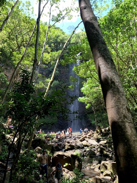 Finally we arrived at "Secret Falls". Its real name is Uluwehi Falls, and every tourist knows about it, so it's not really a big secret. However, it actually does not appear in Google Maps at all, so maybe it is a secret...
