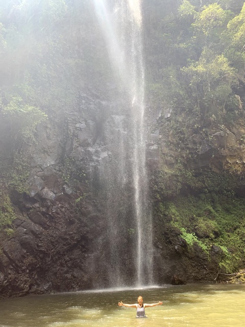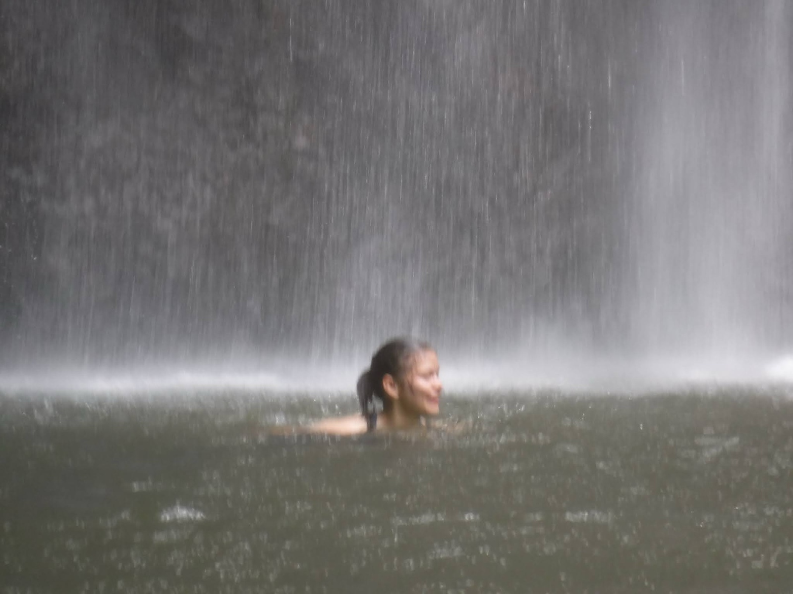 We all took turns going under the actual waterfall. It is about 120 feet tall, so the water gets moving by the time it smacks you on the head.