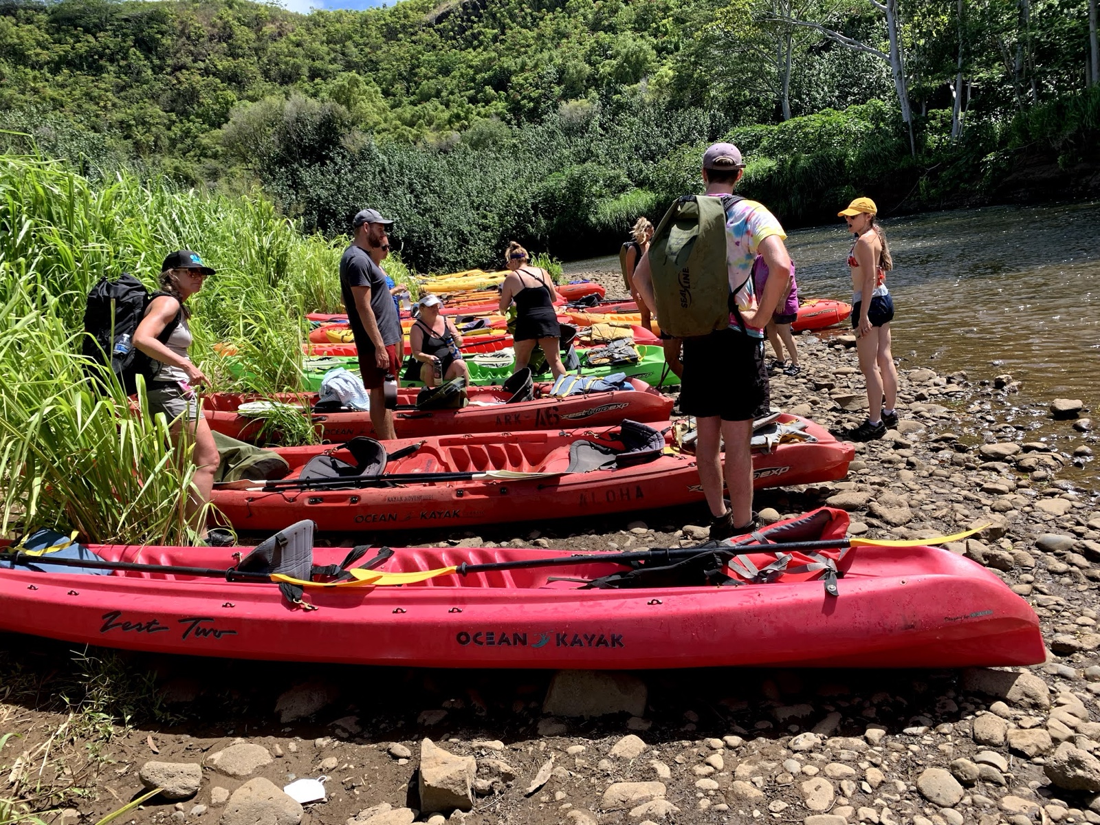 After paddling up the river for 2 miles, we arrived at the kayak "parking lot." We took our dry bags with us as a backpack (which had our lunch and water in it). The kayak rental place said they never had a problem with people stealing kayaks or life jackets--just with occasionally grabbing the wrong kayak by accident. So we carefully noted the ID# on ours.