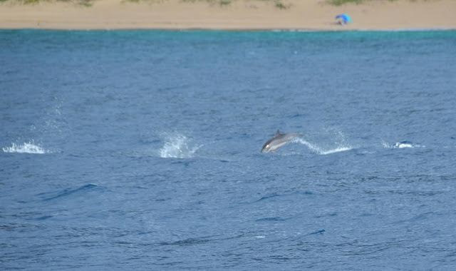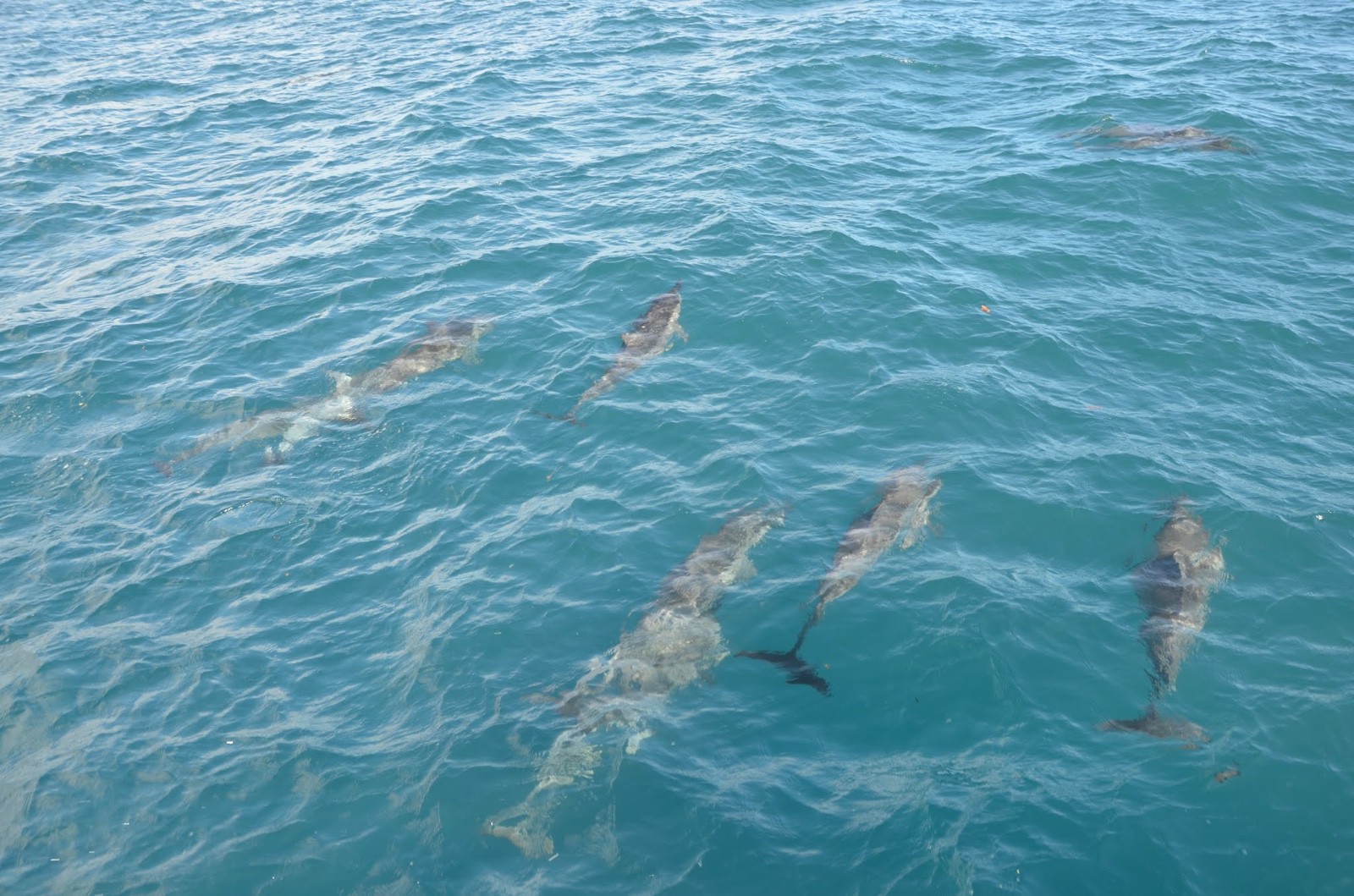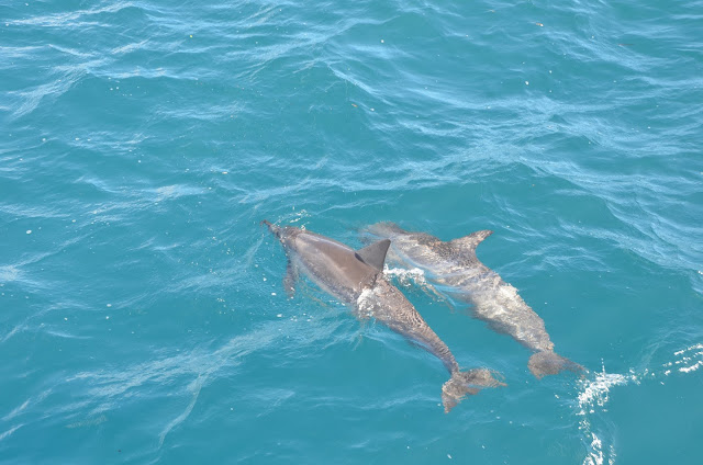 The captain said that some of the dolphins were "asleep", where they shut off half their brains and go around in pairs to help each other do stuff.