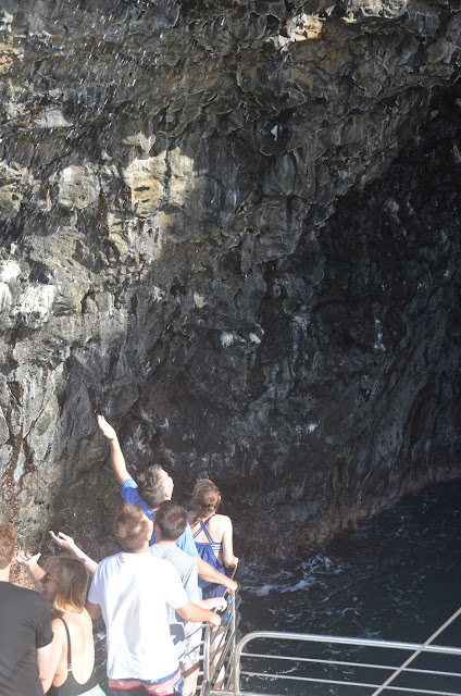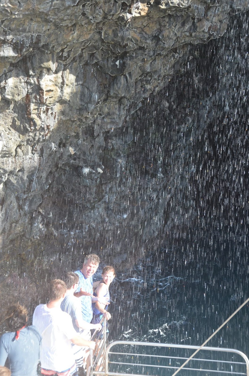 At this little waterfall, the captain steered the boat right over to the cave so that people could stand at the bow and get hit by the waterfall.