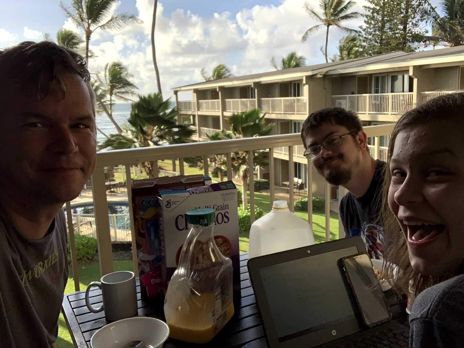 Every morning we had breakfast on the lanai (back deck). Sienna was missing 8 days of high school for this trip, so she did homework whenever she had time, and ended up being pretty much caught up when she returned.
