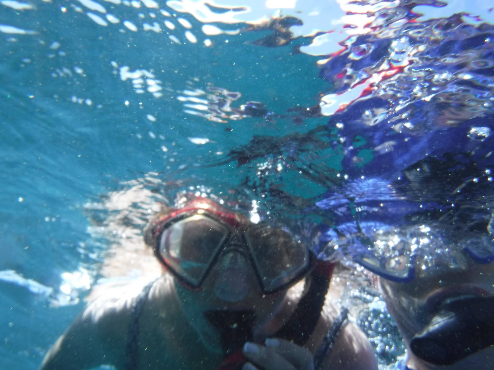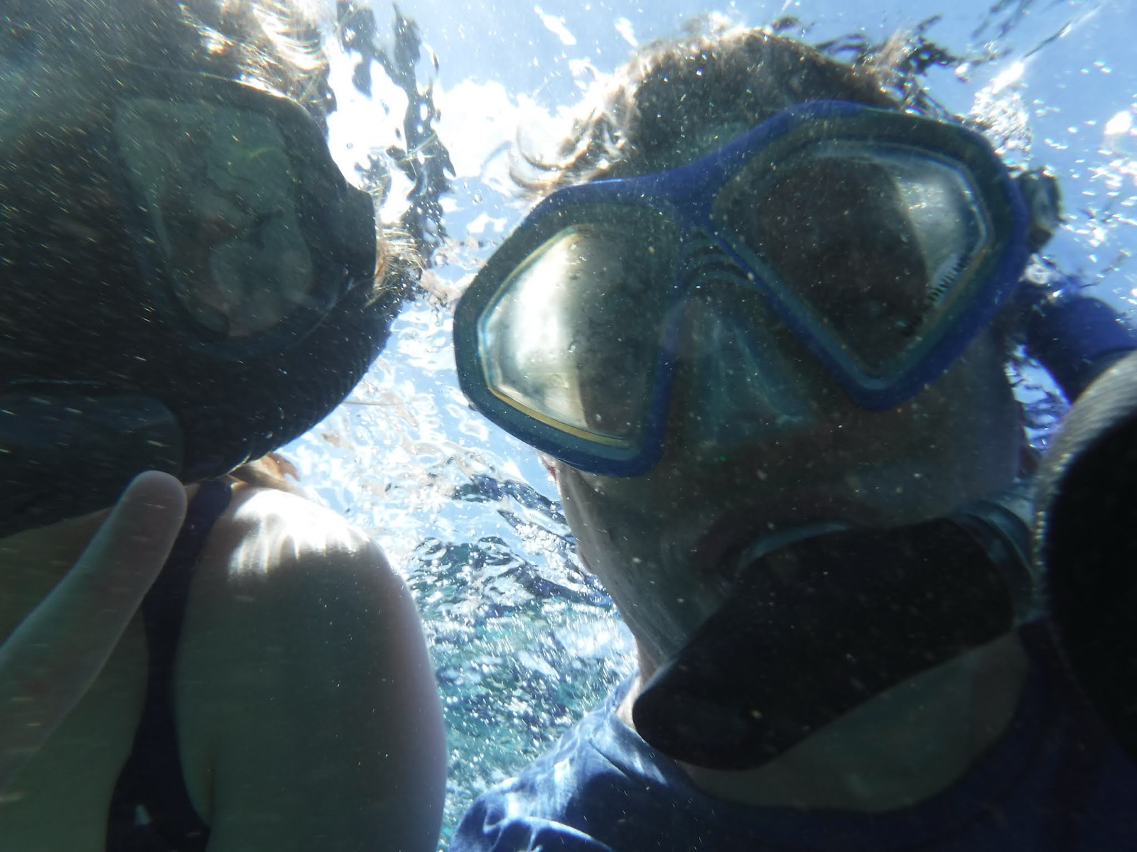 Here's an attempted selfie of Sienna and me, using my underwater camera (blindly).