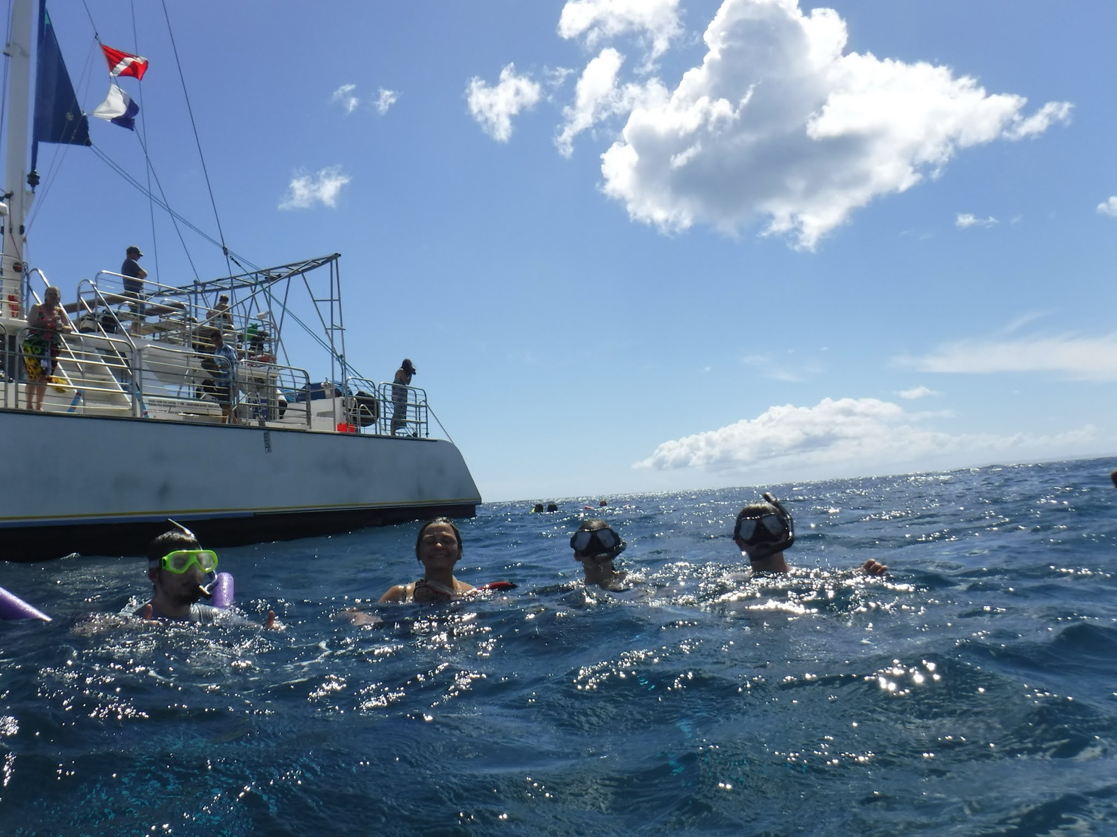 After a bumpy exit from the port area, we dropped anchor at a reef to do some snorkeling.