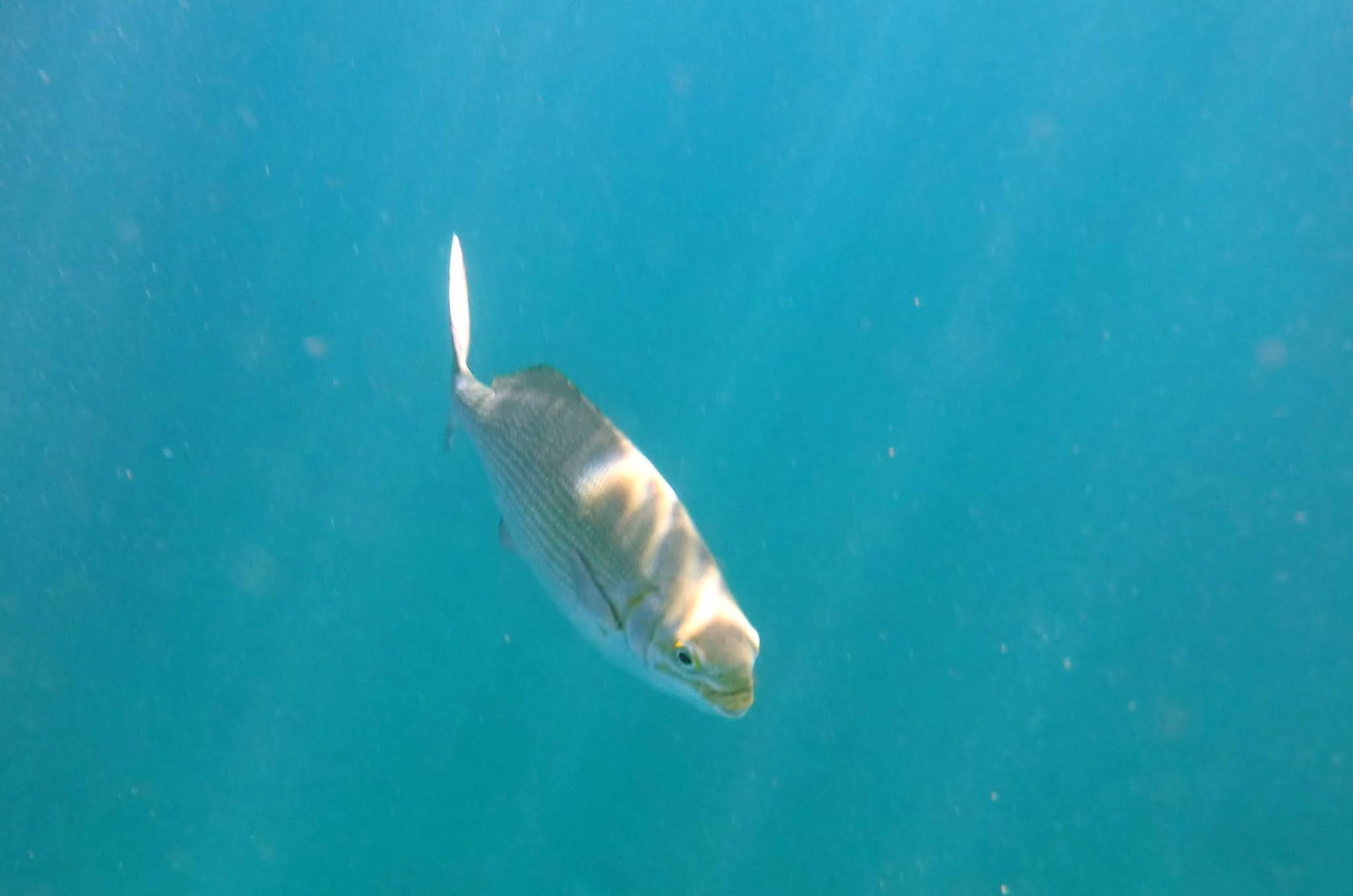 The reef was about 20 feet down, so it was a little hard to see much, but we did see a few fish down there.