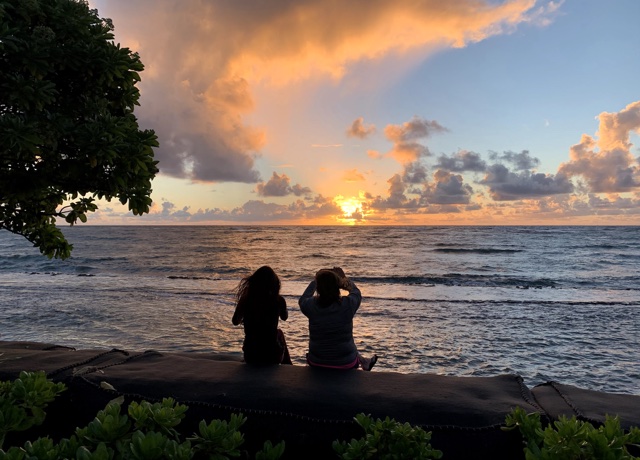 I had heard that people sometimes feel trapped when they live in Hawaii, because you can't go very far. But Beth said that they didn't feel like that at all. Jess said that it was like living in a small town (there is just one movie theater on the island, for example, and it plays old shows). Beth said that when people visit, they're all like "look at this island paradise!" but when you actually live there, it's just life--taking kids to soccer, making dinner, going to work, and so on. Although, I'd add that "it's just life--with an especially beautiful backdrop."