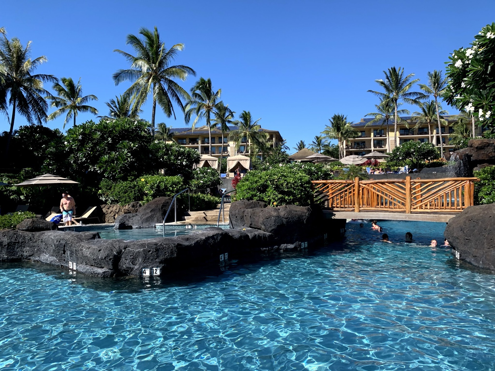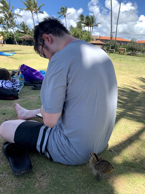 After that, we were all starving, so we chose to eat at the Holoholo Grill, which was a tasty restaurant at a big fancy new resort (I figure it's new because Google Maps shows an empty field there). It had a great pool, so after lunch we sort of sauntered over there and checked it out. Linette sat on a recliner and read for a bit while I tried out the pool and hot tub.