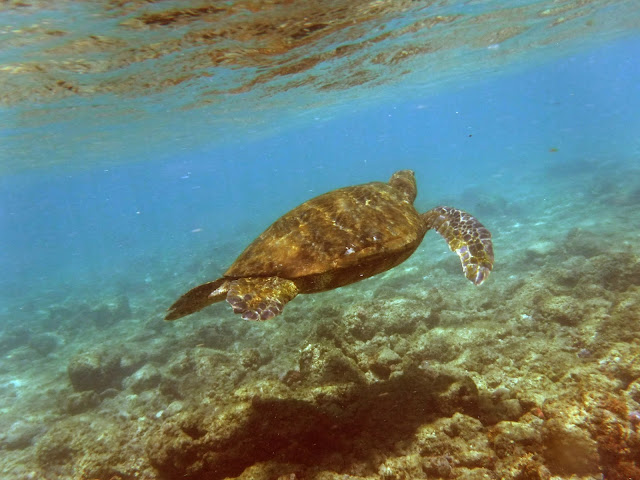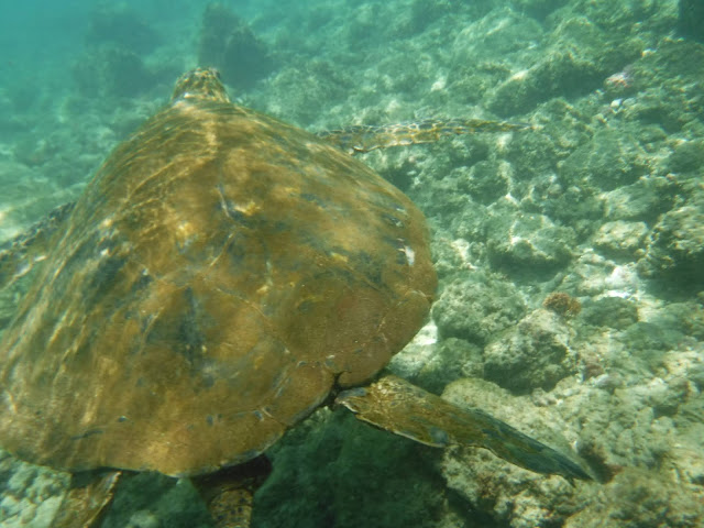 Later, I was snorkeling along, minding my own business, when suddenly there was a huge rock next to me. But it wasn't a rock...(Bob: "...It was a rock lobster!!")...no, it was a huge sea turtle!