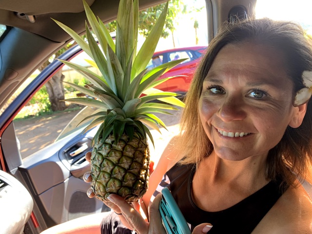 As we drove back from that place, we saw a fruit stand by the side of the road and picked up some fresh pineapple and dragon fruit.