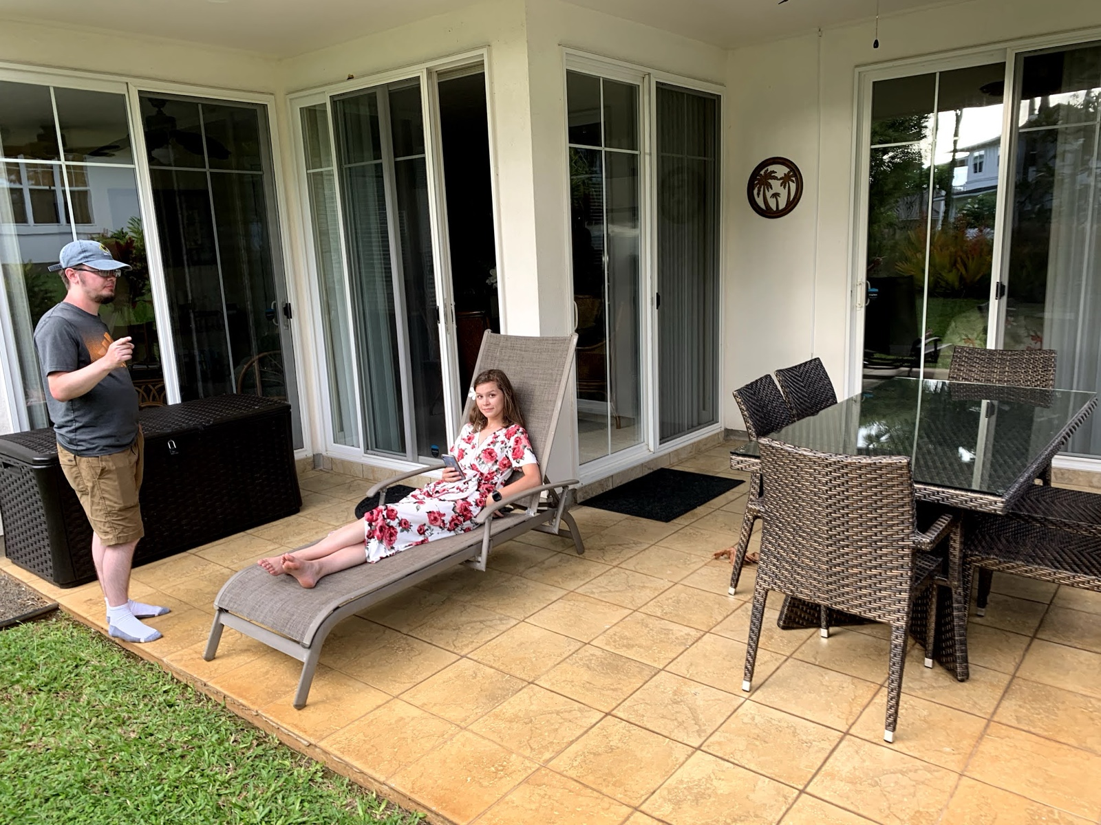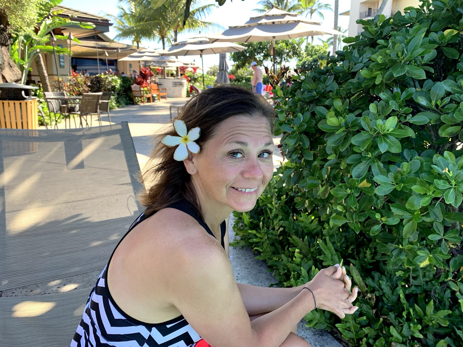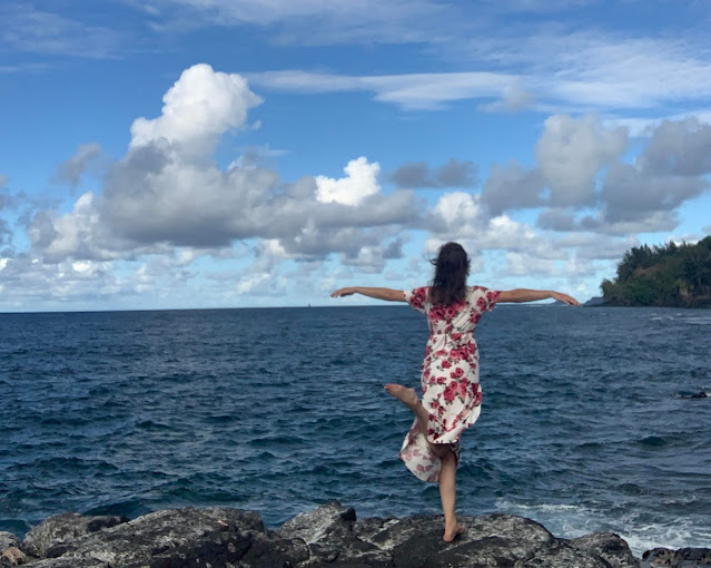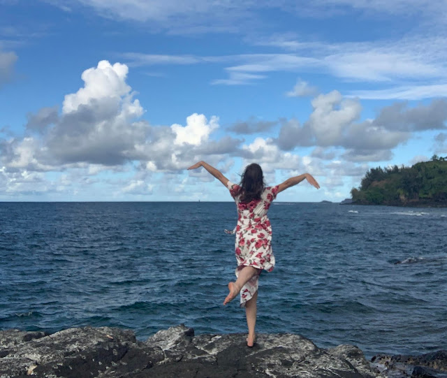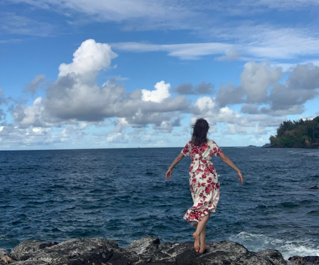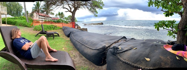 At that point, we checked in to our new AirBnB, which was located in Princeville. When we walked in, Linette said, "Woah, this is swanky!" It took Sienna very little time to locate the optimal reading spot on the lanai out back (and a flower for her hair from a nearby tree).