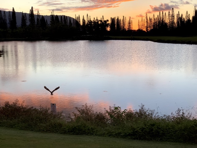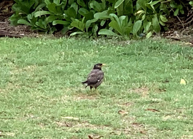 Later, I heard a very complicated bird chirp, and it turned out to be a mina bird. They are all over in Kauai. It reminded me of my Aunt Kay Merrill's mina bird named "Flaps" that used to say, "Have a good day, Mark!" in a perfect imitation of Kay. (One time the phone rang, and Flaps said, "I'll get it," so Don didn't answer because he really thought it was Kay).