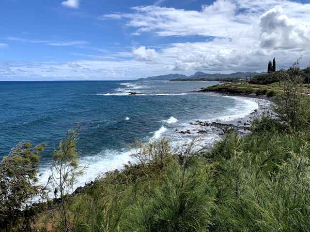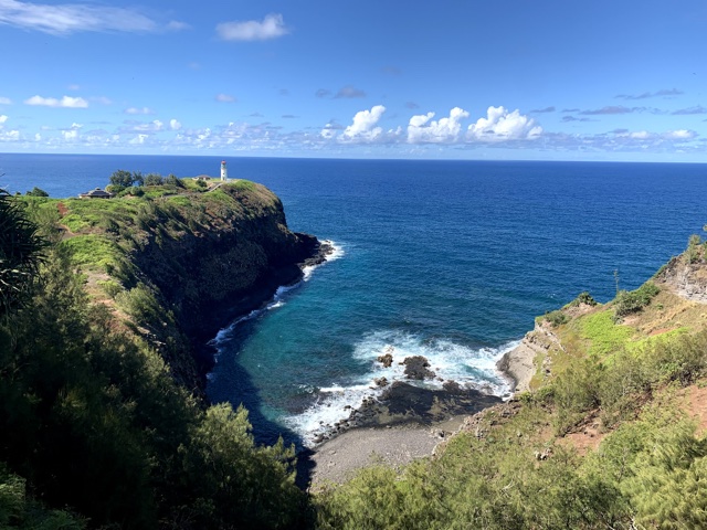 As we approached Princeville, we checked out the Hanalei Valley Lookout, which was gorgeous, with the green farms below and the tree-covered mountains above.