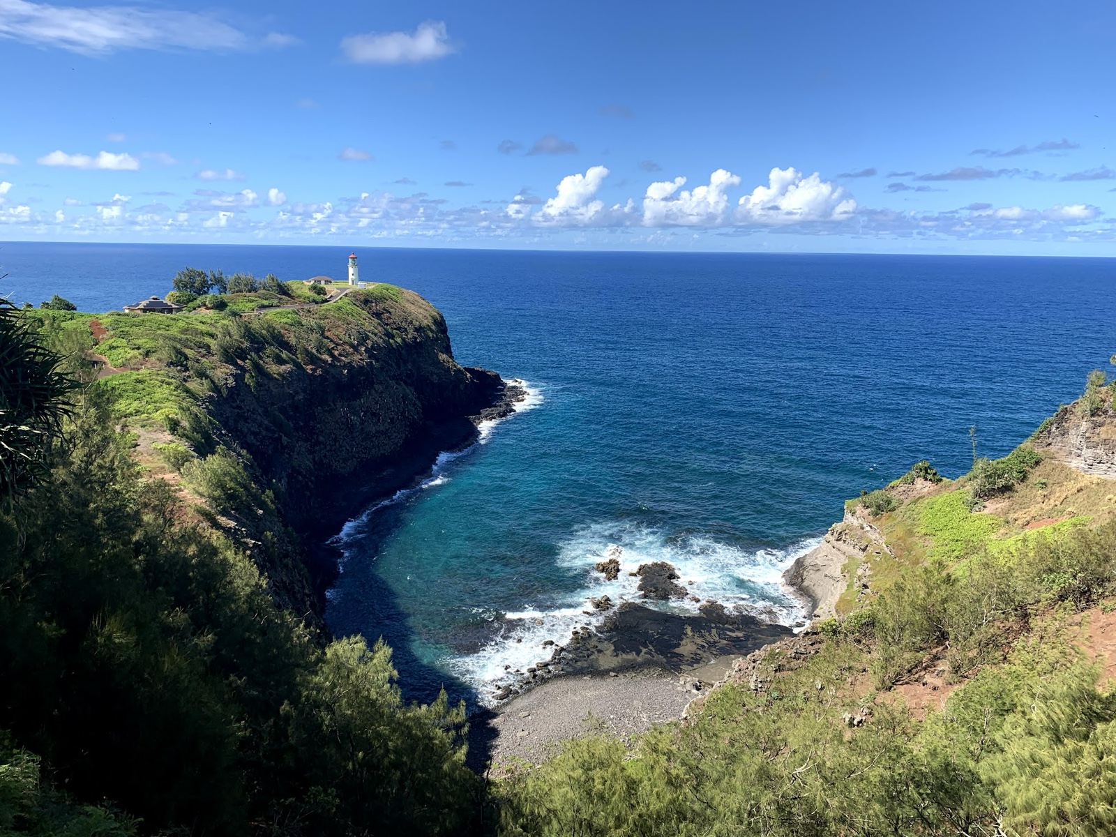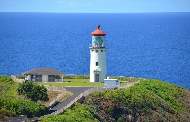 When we got up north, we stopped in at the Kīlauea Lighthouse. The gate was closed, so we just looked at it from afar (with a zoom lens).