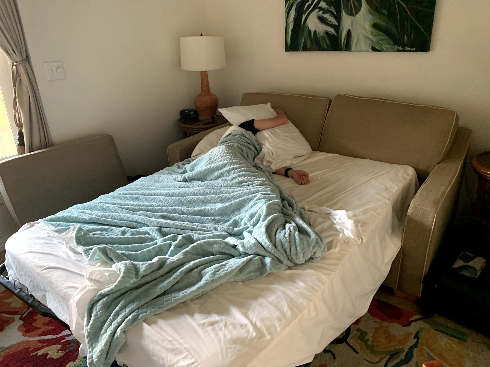 Linette's dramamine warned that it could cause drowsiness for 24 hours. 3 hours to go!