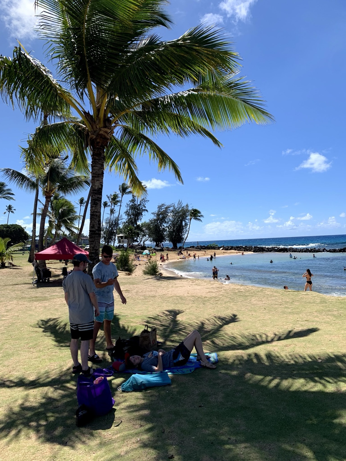 When we got to the beach, we found that the upper part had a light covering of grass so it was nice that you're not sitting in the sand and getting it everywhere. We found a palm tree that provided some lovely shade.