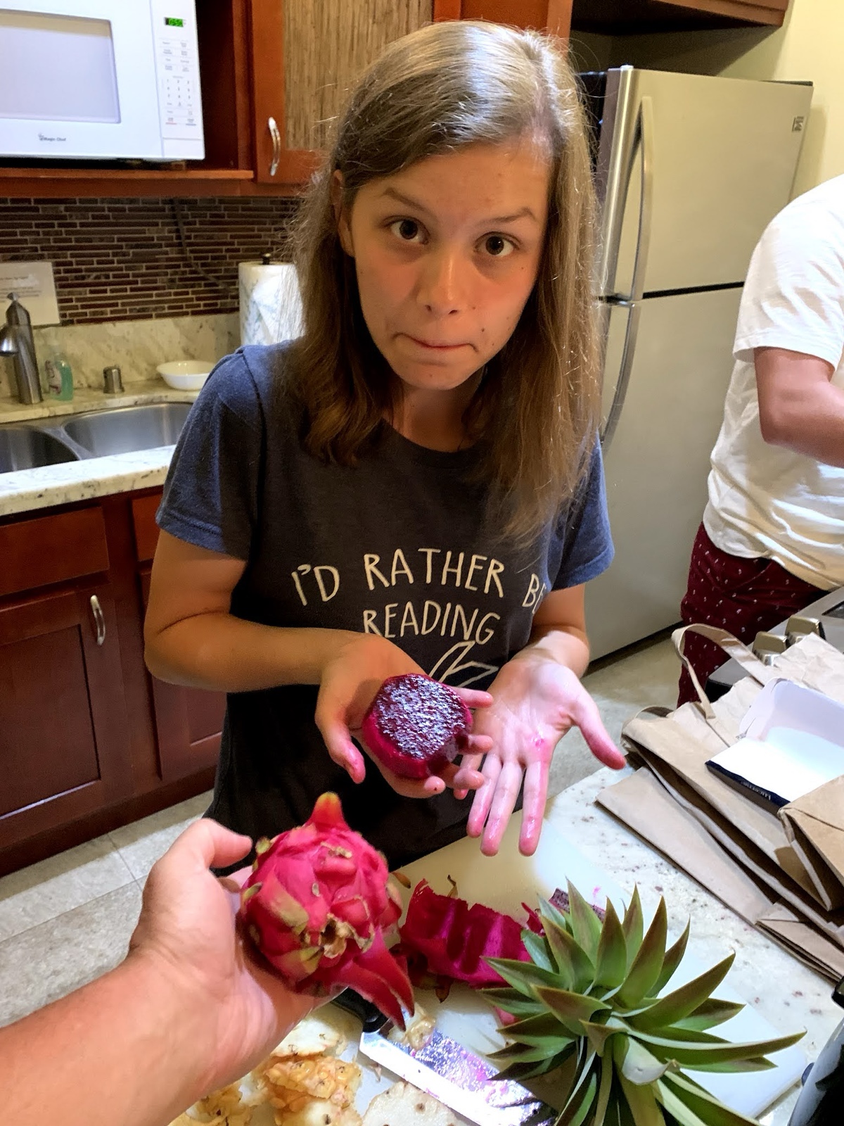 The dragon fruit looked so strangely deep red. (Its flavor was pretty mellow compared to its color, though).