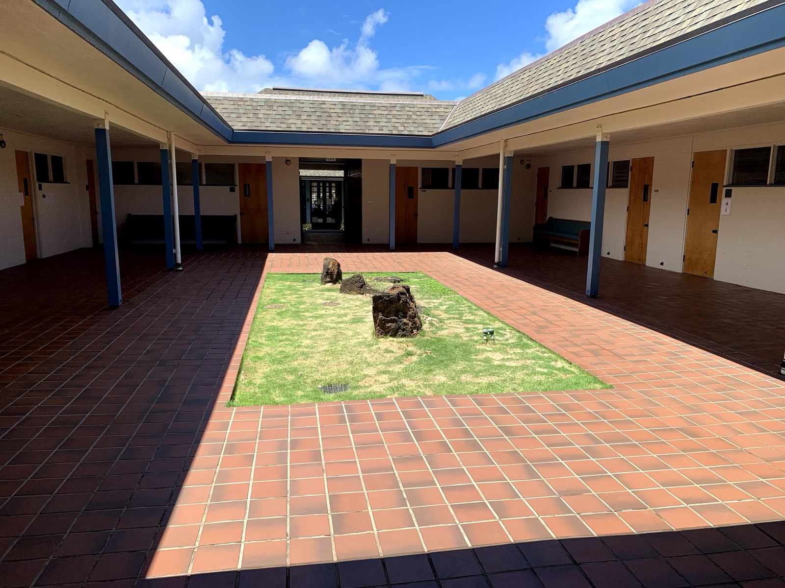 I like how the church building had a courtyard with little lava stones. They also just left windows open to let the pleasant breeze blow through during the meetings.