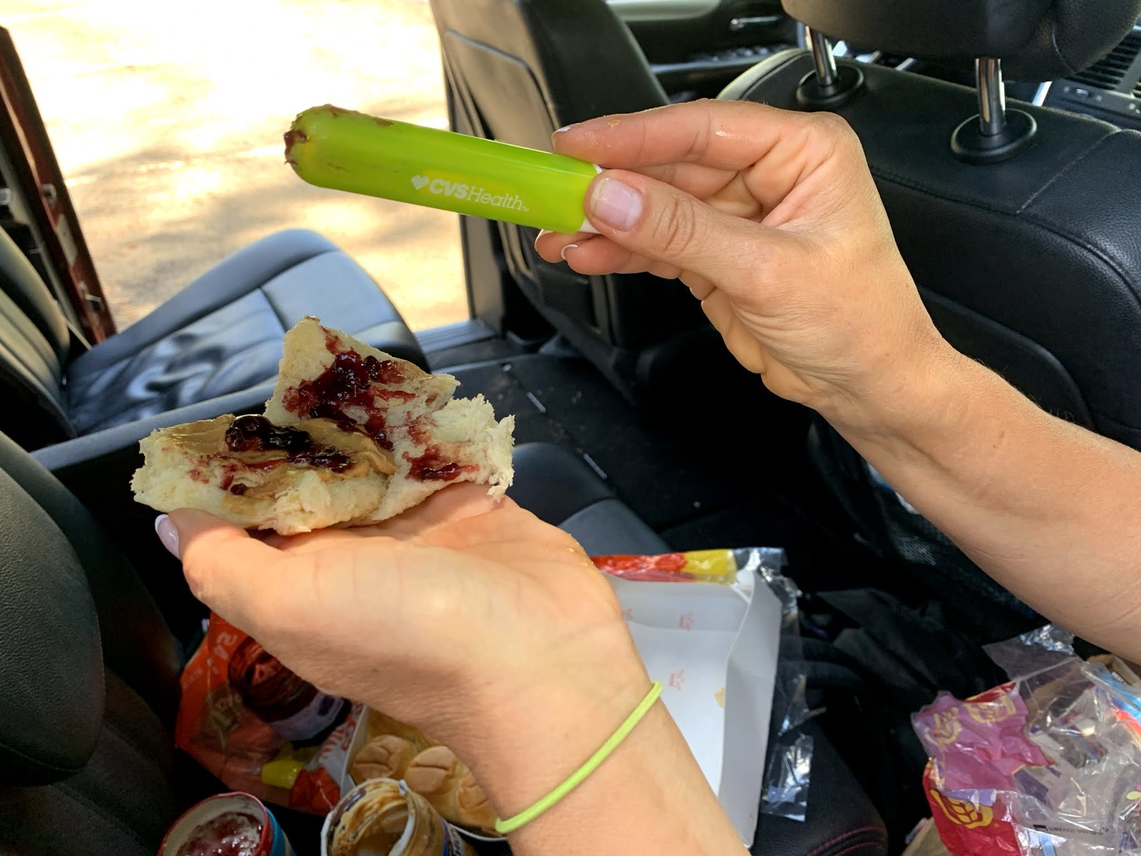 After church we broke out our leftover Hawaiian rolls and peanut butter and jelly, spread with the handle of a portable toothbrush. It worked.