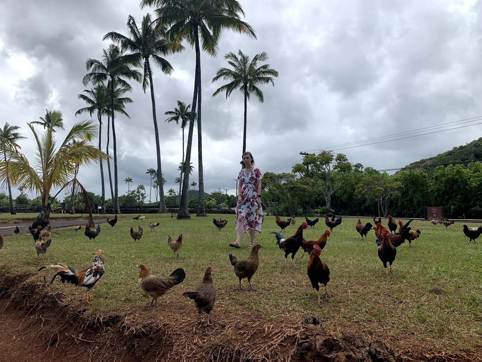 This particular viewpoint seemed to best illustrate the state of the chicken population in Kaua'i. We left a door of the van open, and someone said, "You'd better close that, or you're going to get a van full of chickens."