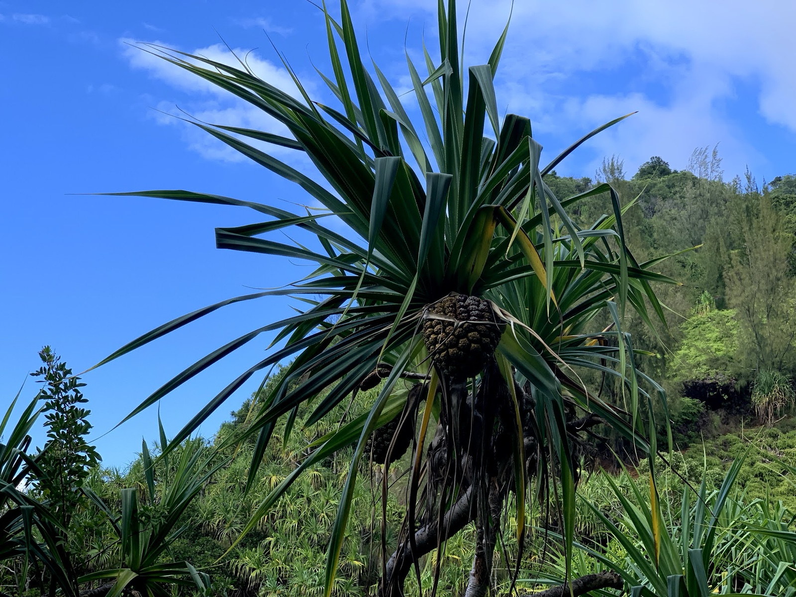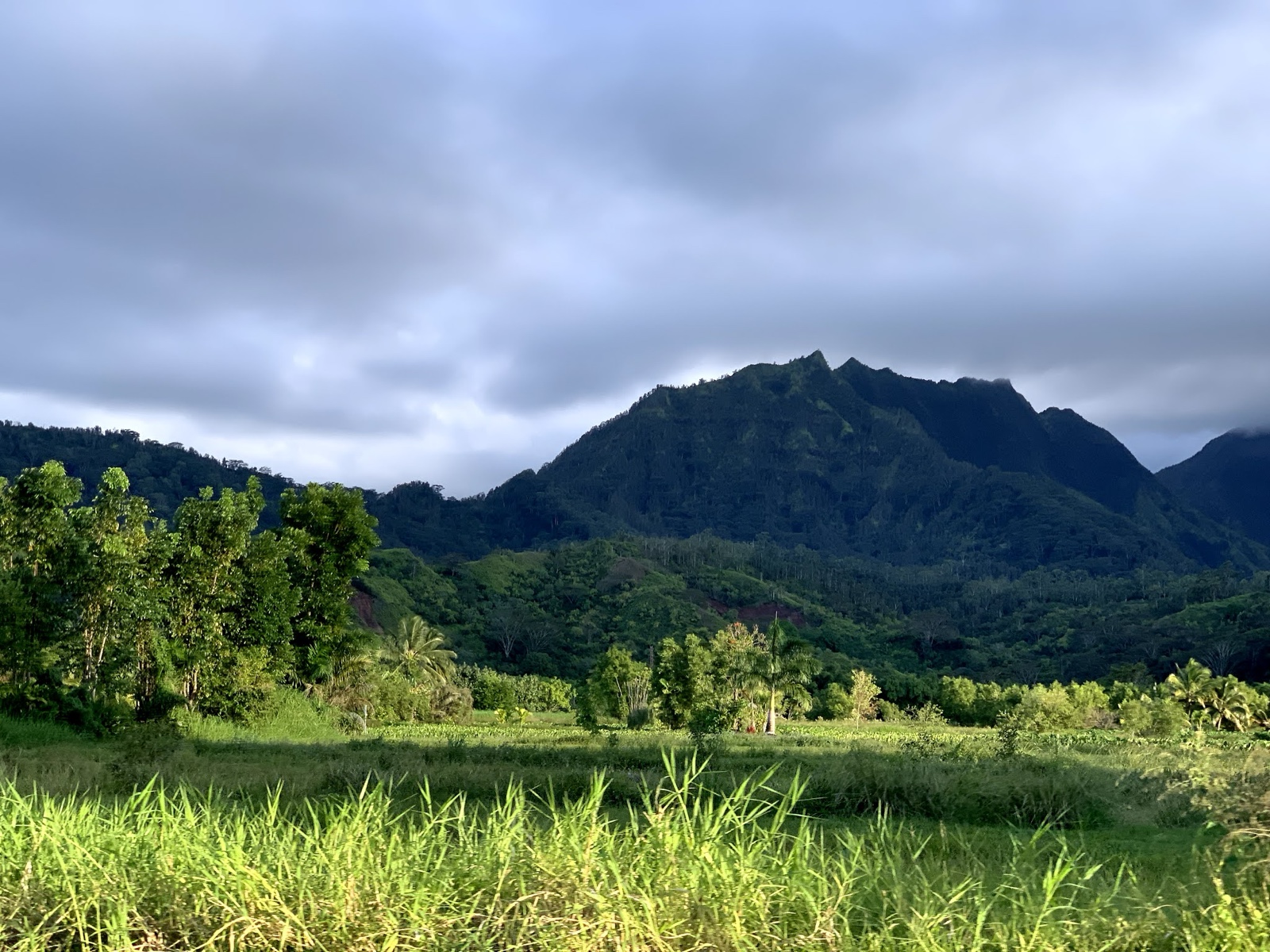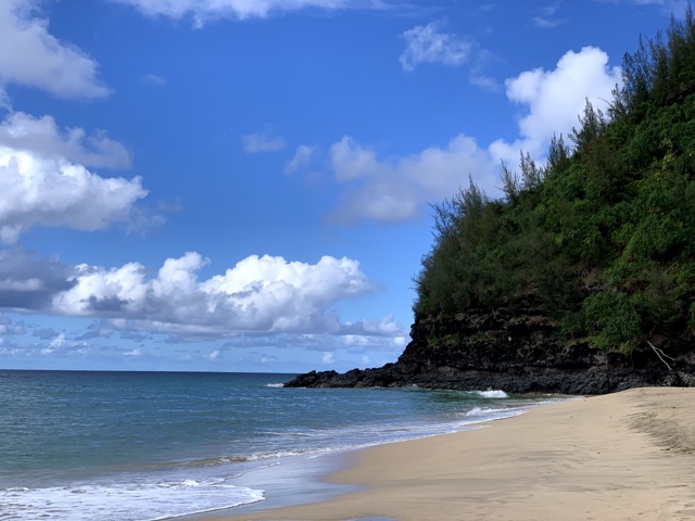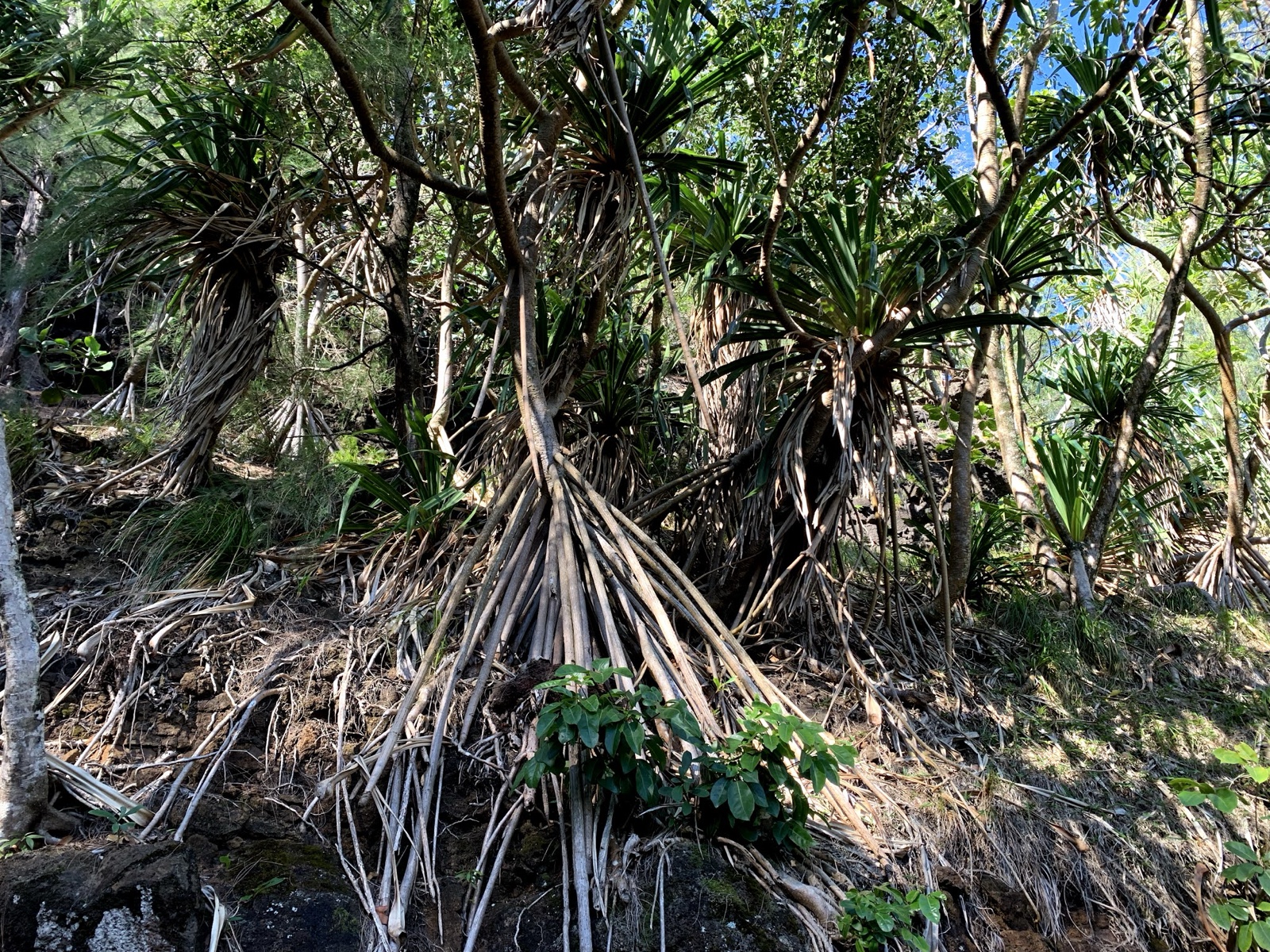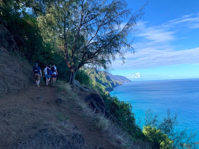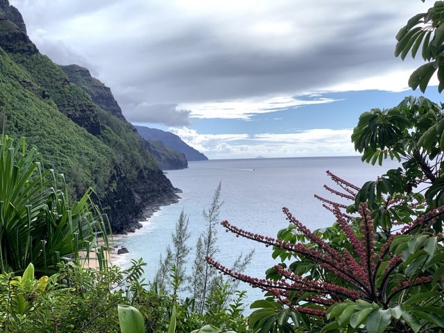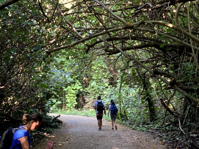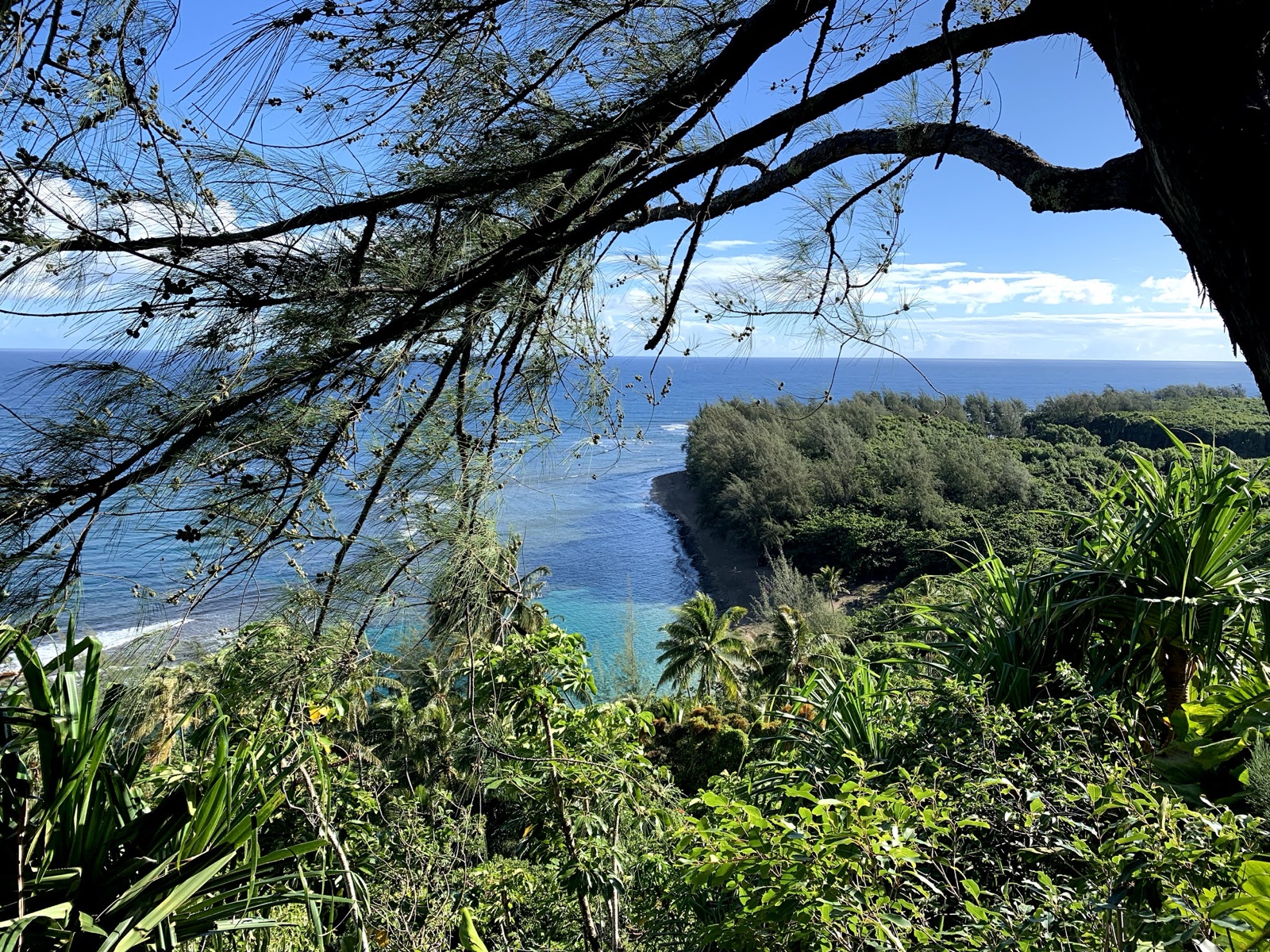 We had to buy morning, mid-day and afternoon passes in order to have time for our long, steep hike, which started at Hā’ena State Park, where we walked through this tunnel of trees.