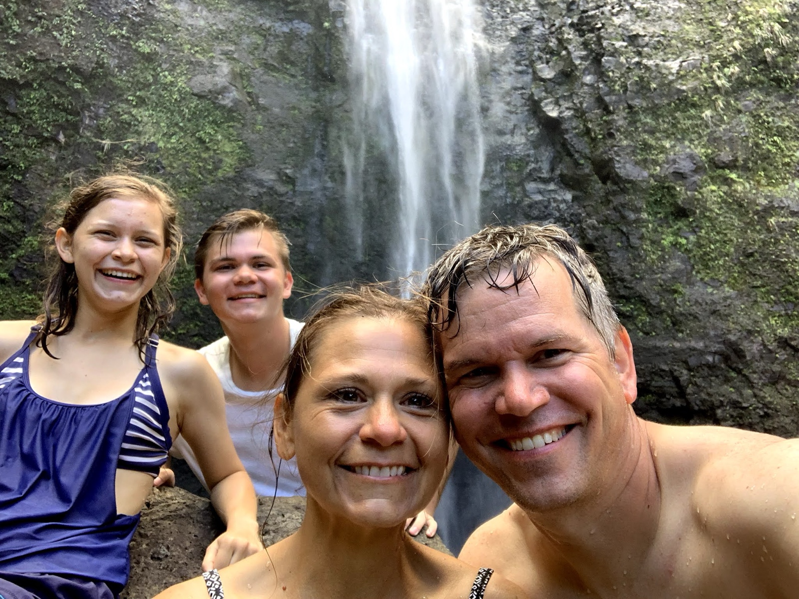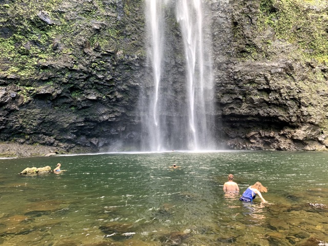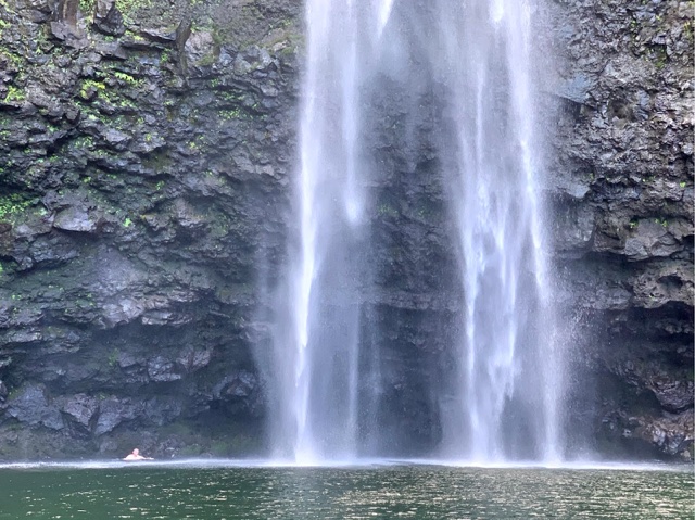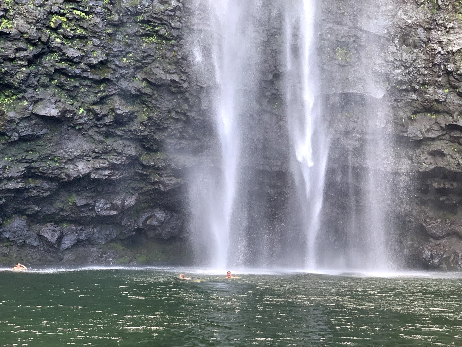 After hours of hiking and sweating, it was wonderful to swim under the falls.
