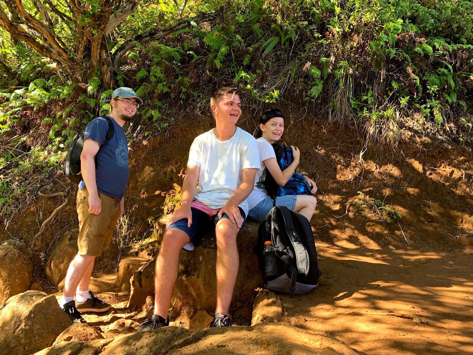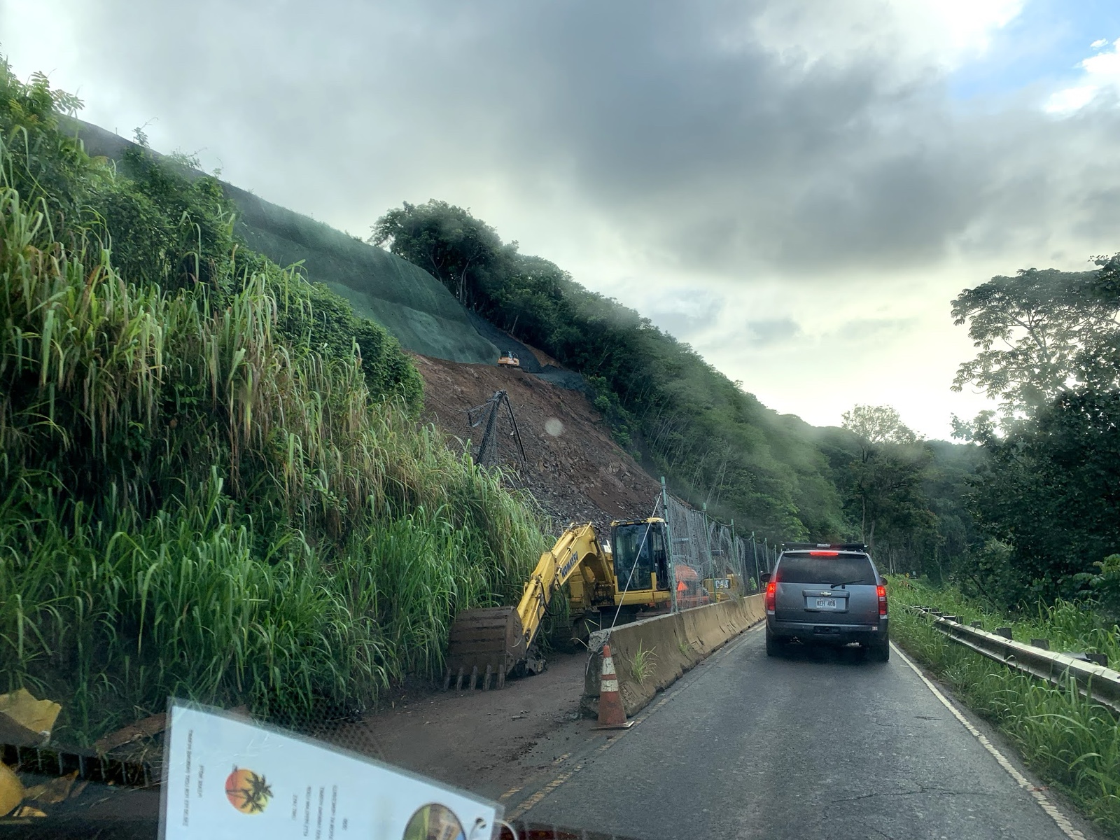 We went to the local grocery store shortly after it opened at 6 a.m. to get food for lunch and stuff, and then we all packed our backpacks and headed out. There was a landslide along the north shore a few months back, and due to the construction, the road would only be open to the public until 7:45 a.m., after which we would have to wait until 1 p.m., which would ruin everything. So we were anxious to get there in time.