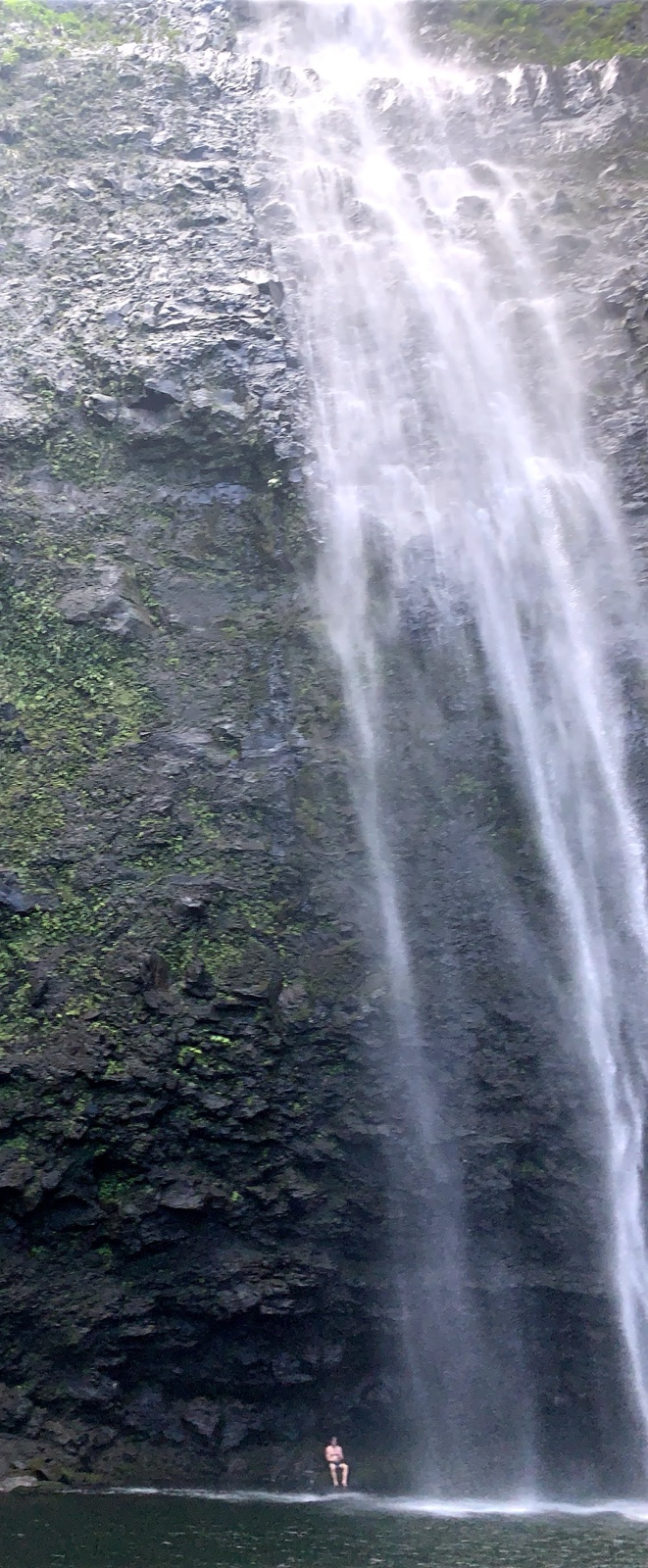 After going behind the falls and swimming through them, I floated on my back looking up at the water pouring down, and it looked so cool. A gal on the shore commented that that looked "epic". It was.