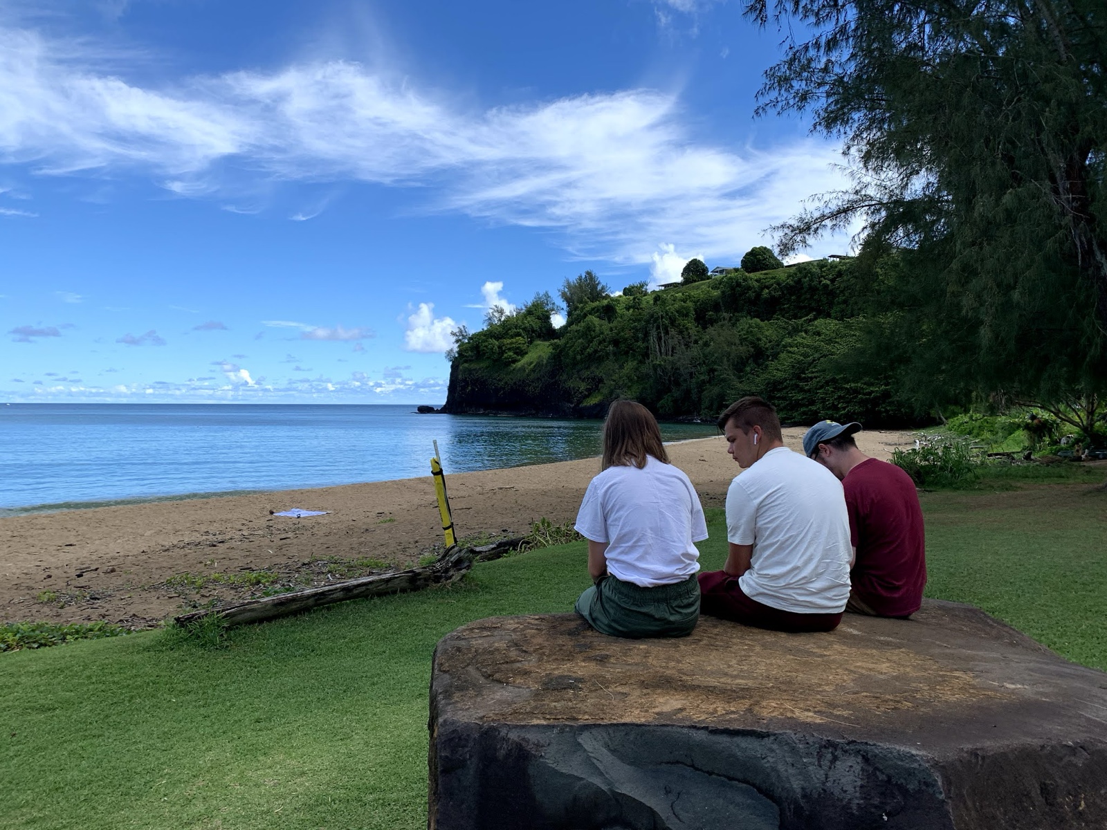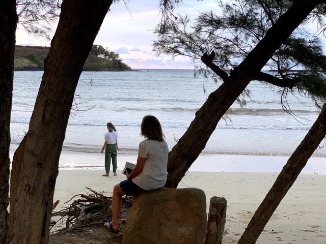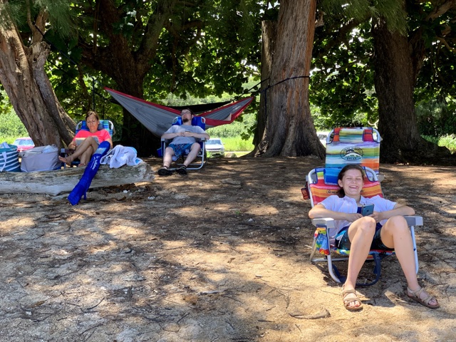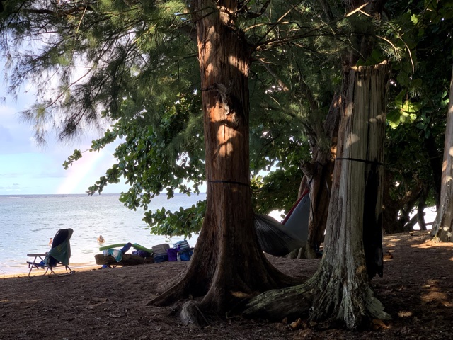 Once we were all up, we headed for Anini beach. There we found a lovely area thick with shade trees right next to the sunny beach.