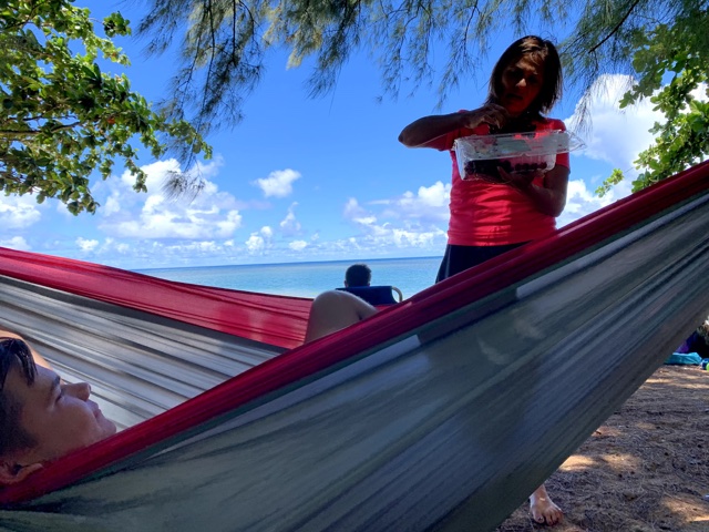 Linette even came around and served us grapes and other snacks. A couple next door to our AirBnB had a ton of food left over from their brief trip, and they were checking out that day, so they loaded us up with fruit, lunch meat and muffins, which made it so we didn't need to leave the beach for lunch. The AirBnB also came with coolers and insulated bags we could bring all our food and towels and stuff in. So along with the shade and hammocks, that made it my favorite day at the beach ever.