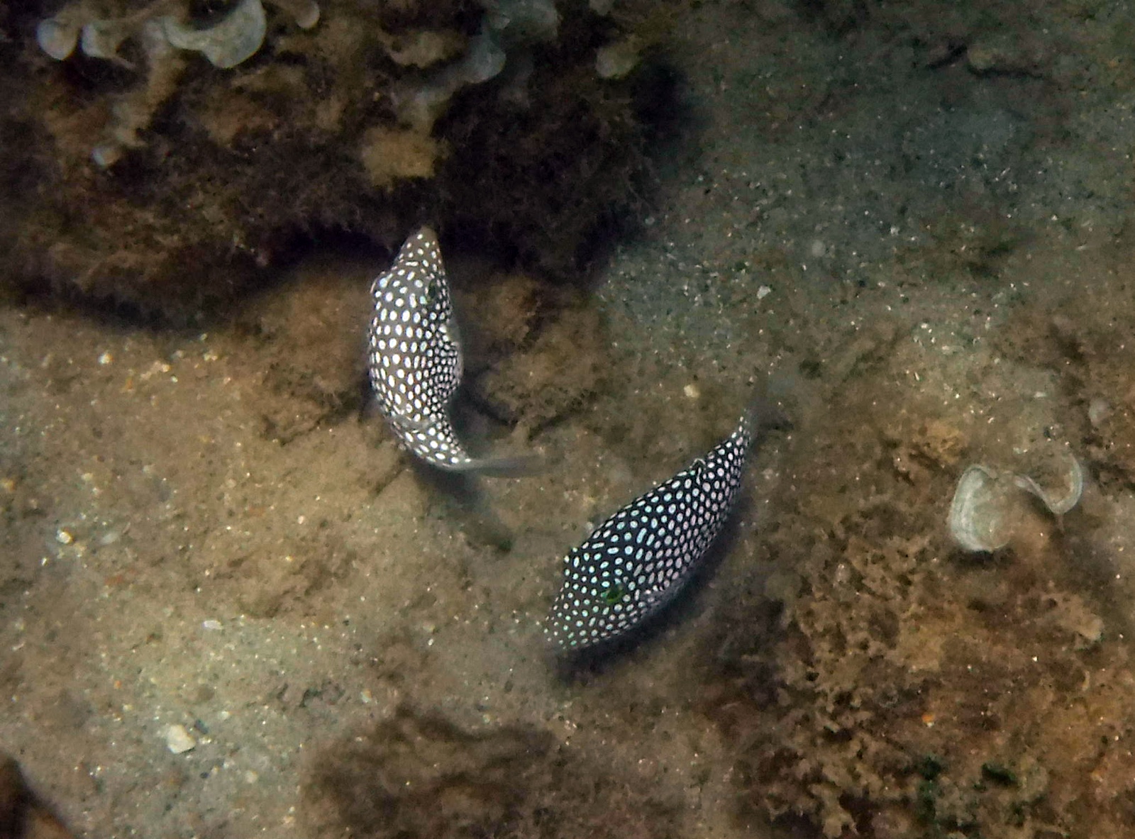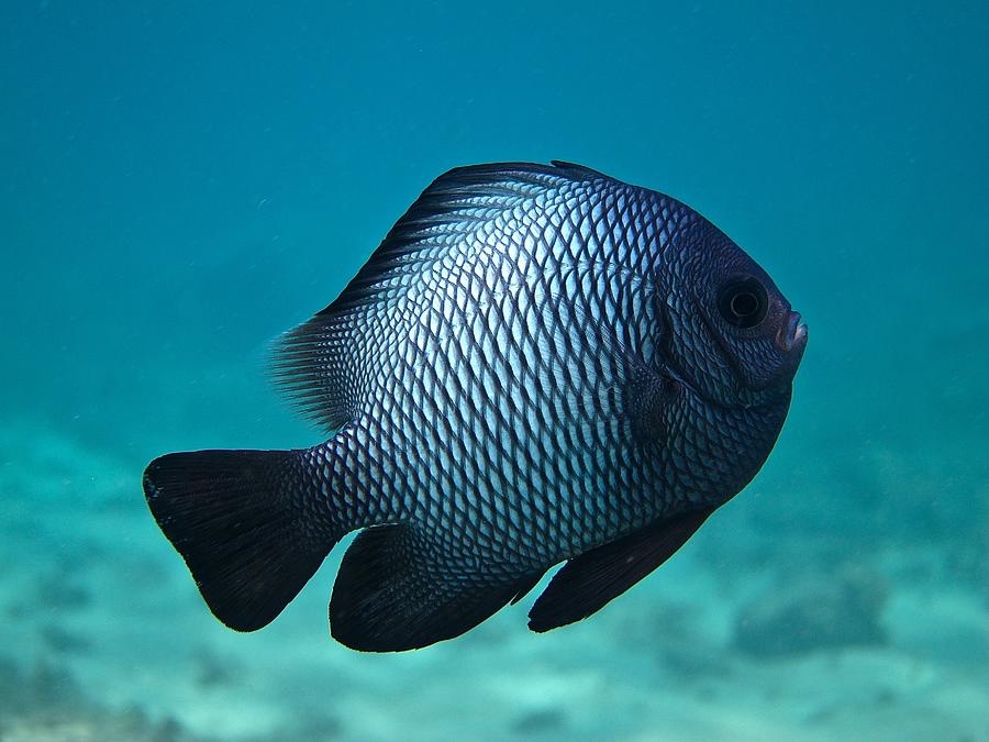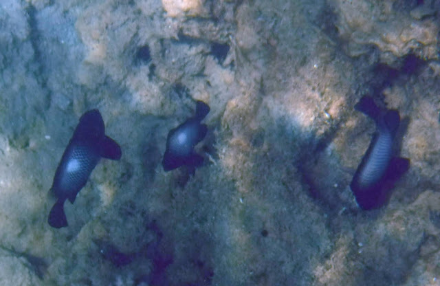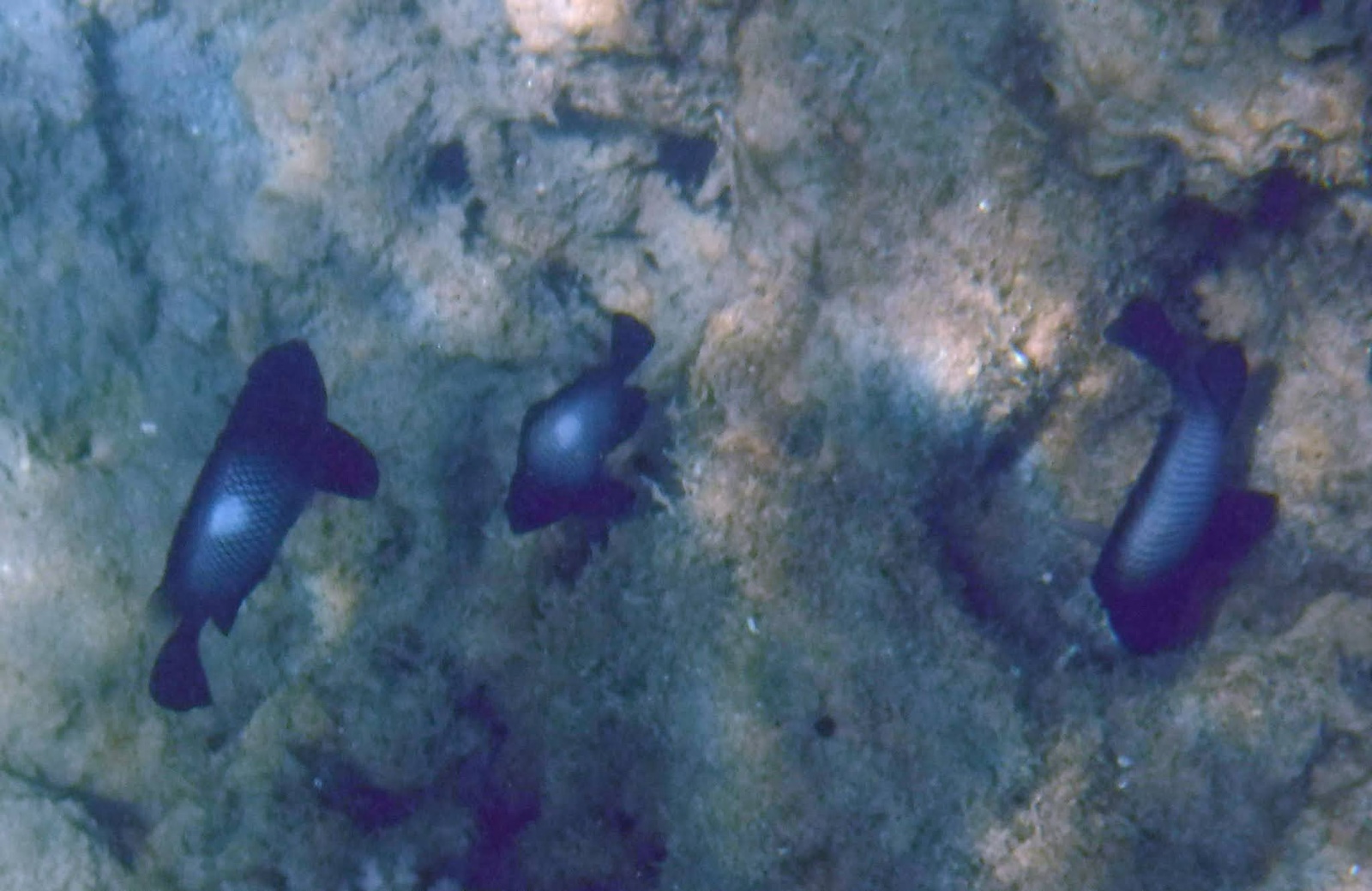 I saw these Hawaiian Damselfish that have an interesting diamond pattern.