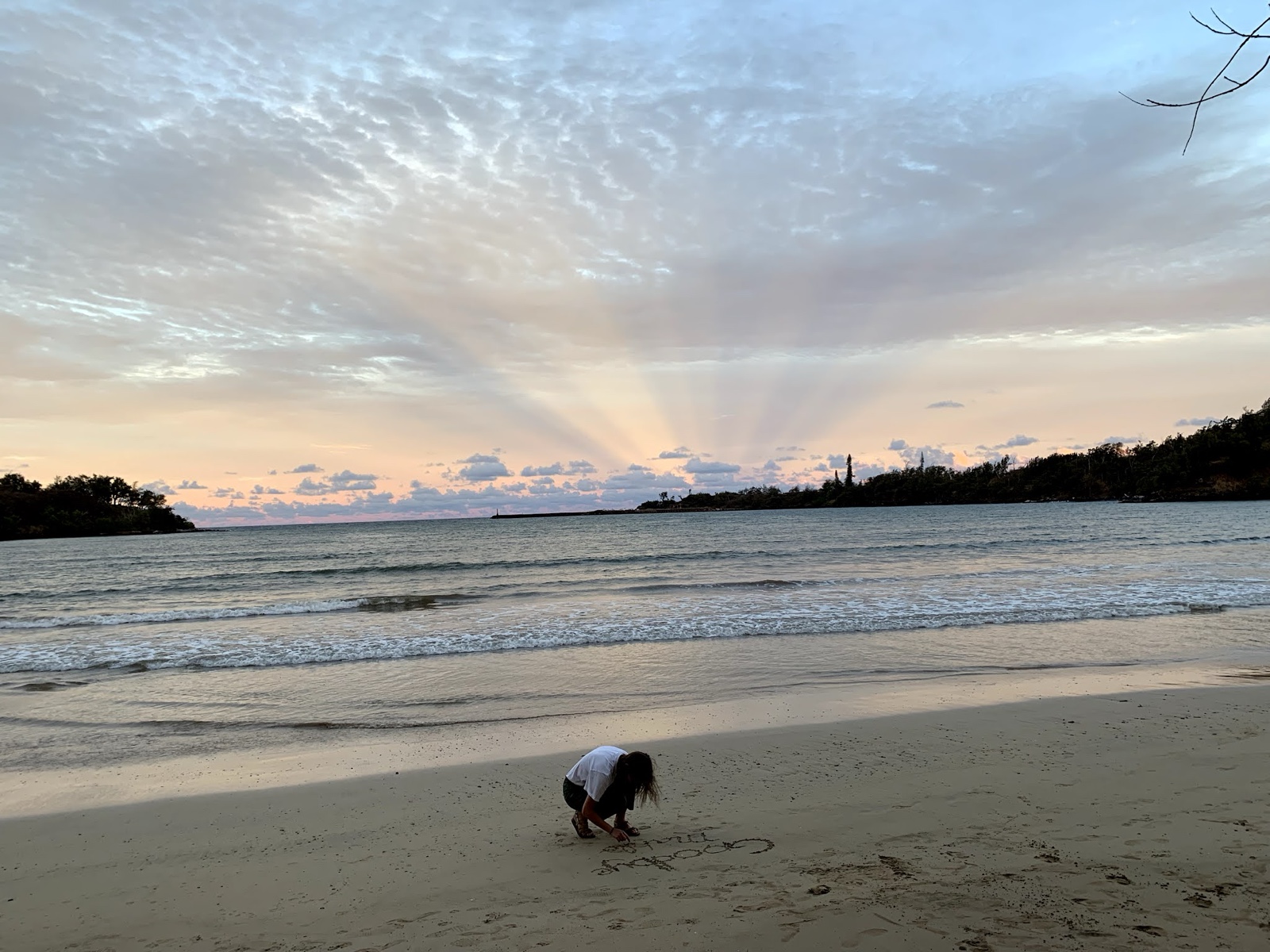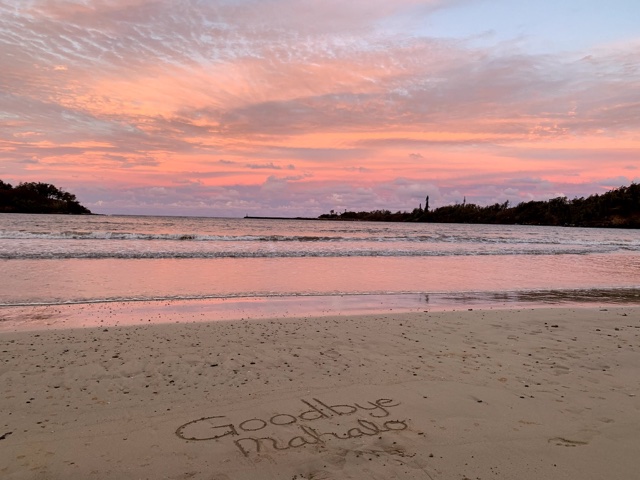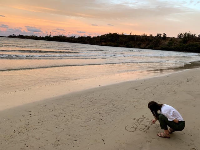 I noticed Sienna writing something in the sand. Then I noticed that she was writing, "Goodbye. Mahalo" (meaning Thank you), and I thought that was so cute. We were all just a bit sad to be leaving this beautiful place.