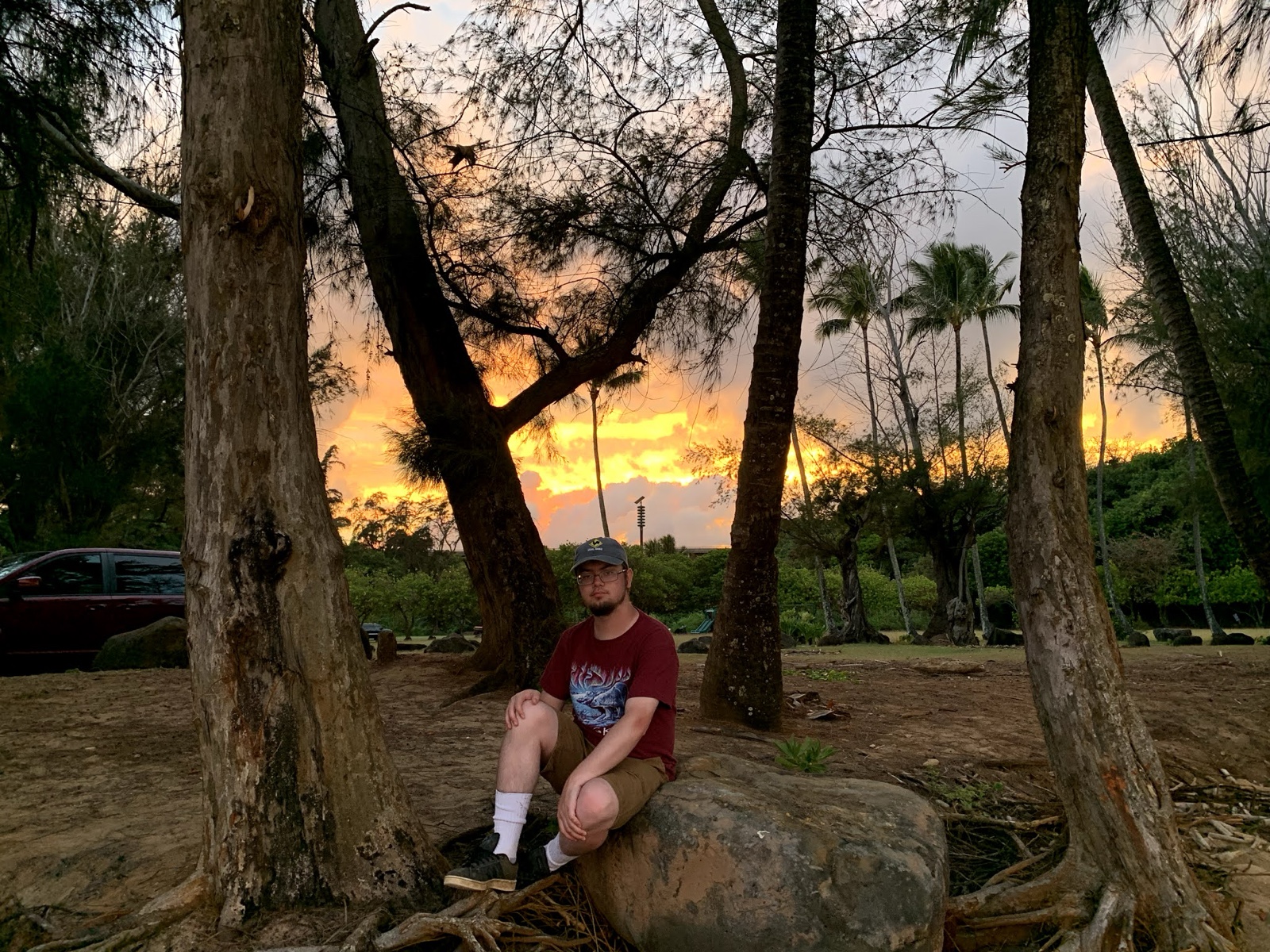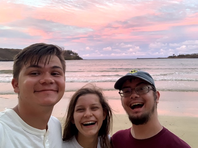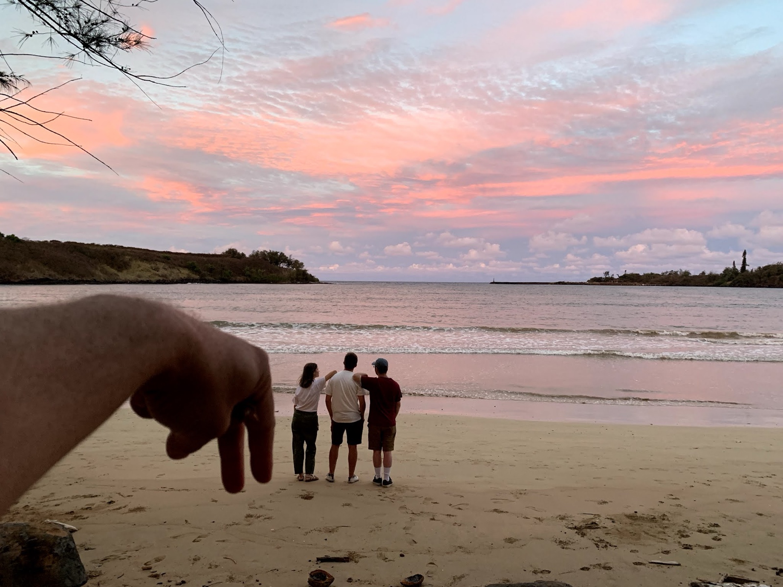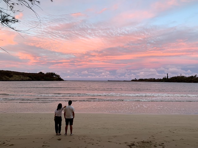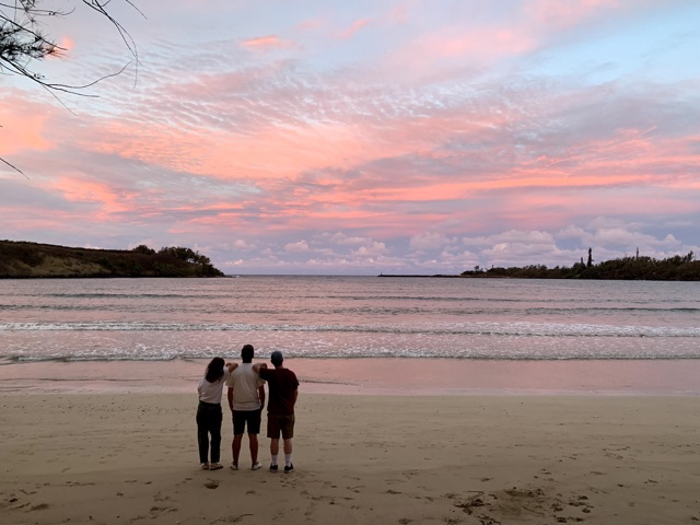 Later, we sat to wait for a free Hula show that was supposed to happen that evening. I went for a little walk on a paved path along the beach that went behind a bunch of resorts, and sat on one of their recliner chairs for a while. When I got back to everyone else, it turned out the hula show wasn't happening (probably due to COVID), so that was too bad.